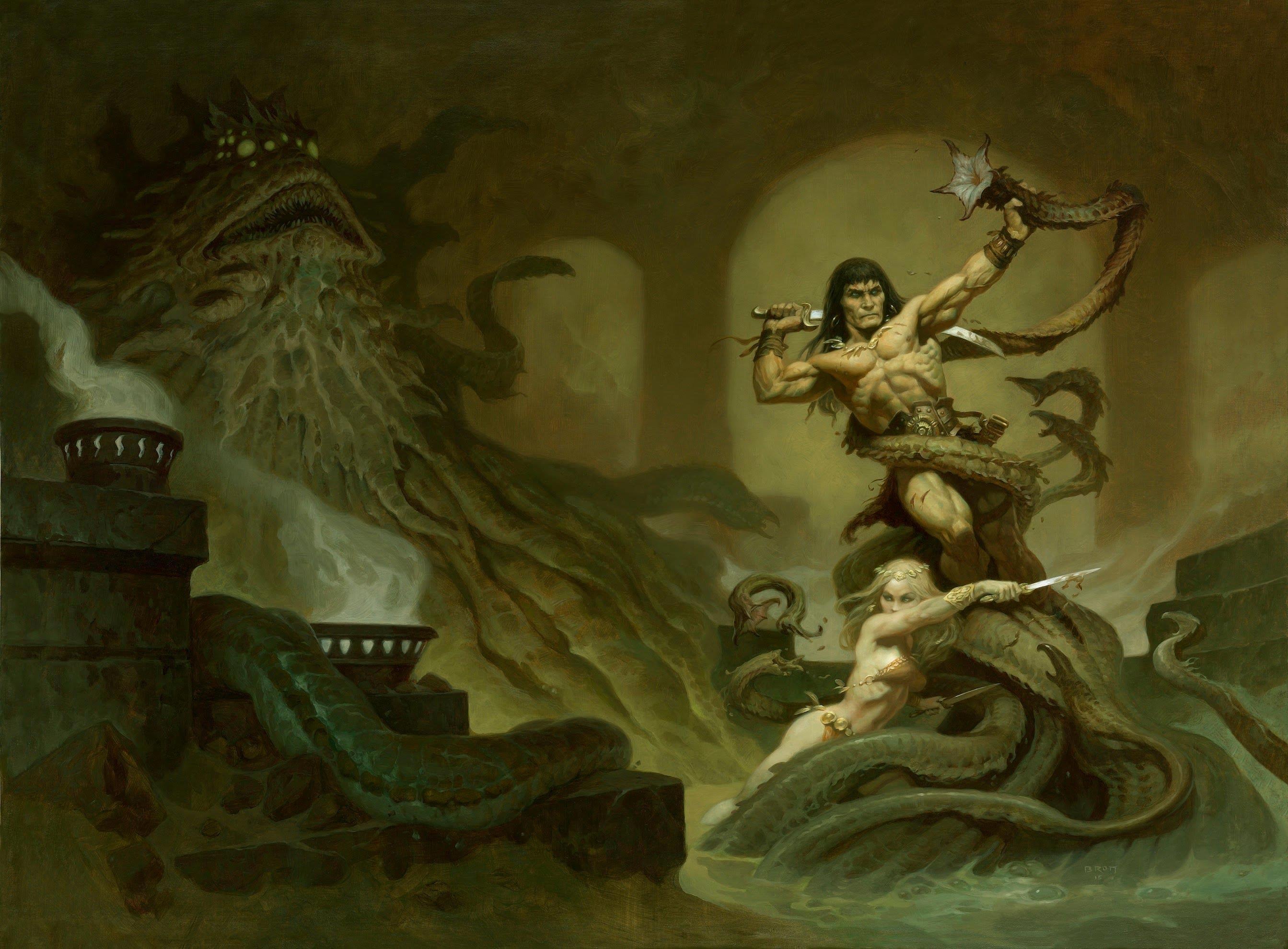 Самый известный в мире варвар одолевает очередного бога в присутствии дамы в беде