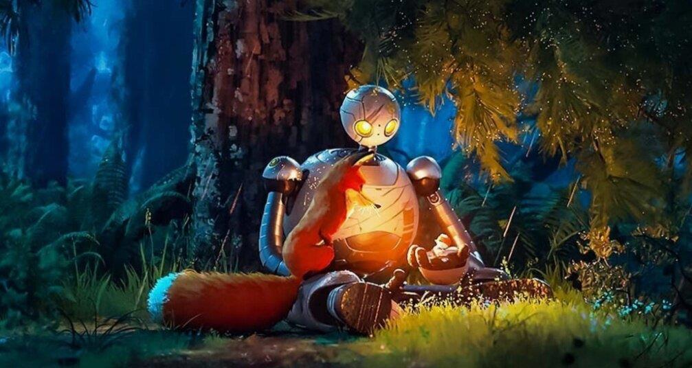 Но самое-самое в “Диком роботе” – это визуал. Визуал чертовски хорош и посмотреть на него на большом экране – однозначно стоило. Стильно, ярко, интересно. Охваченный пламенем лес, улетающая в дальние дали гусиная стая – о-о-очень запоминающиеся и цепляющие за душу кадры. Отдельно в сердце запал и вид на затопленный мост (очень напоминающий Золотые Ворота в Сан-Франциско) и киты. Восхитительно! Не так стильно и безбашенно, как было в сиквеле “Кота в сапогах”, но все равно очень и очень доставляюще. Особенно после сиквела “Головоломки”, который в визуальном плане ярких эмоций не вызывает.