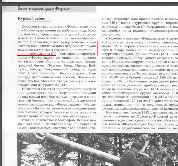 Когда выходили всяческие "опровергающие советскую ЛЖУ" разоблачительные стати, выставляют как доказательство того, что в советских отчётах количество уничтоженных САУ Фердинанд завышалось в несколько раз.