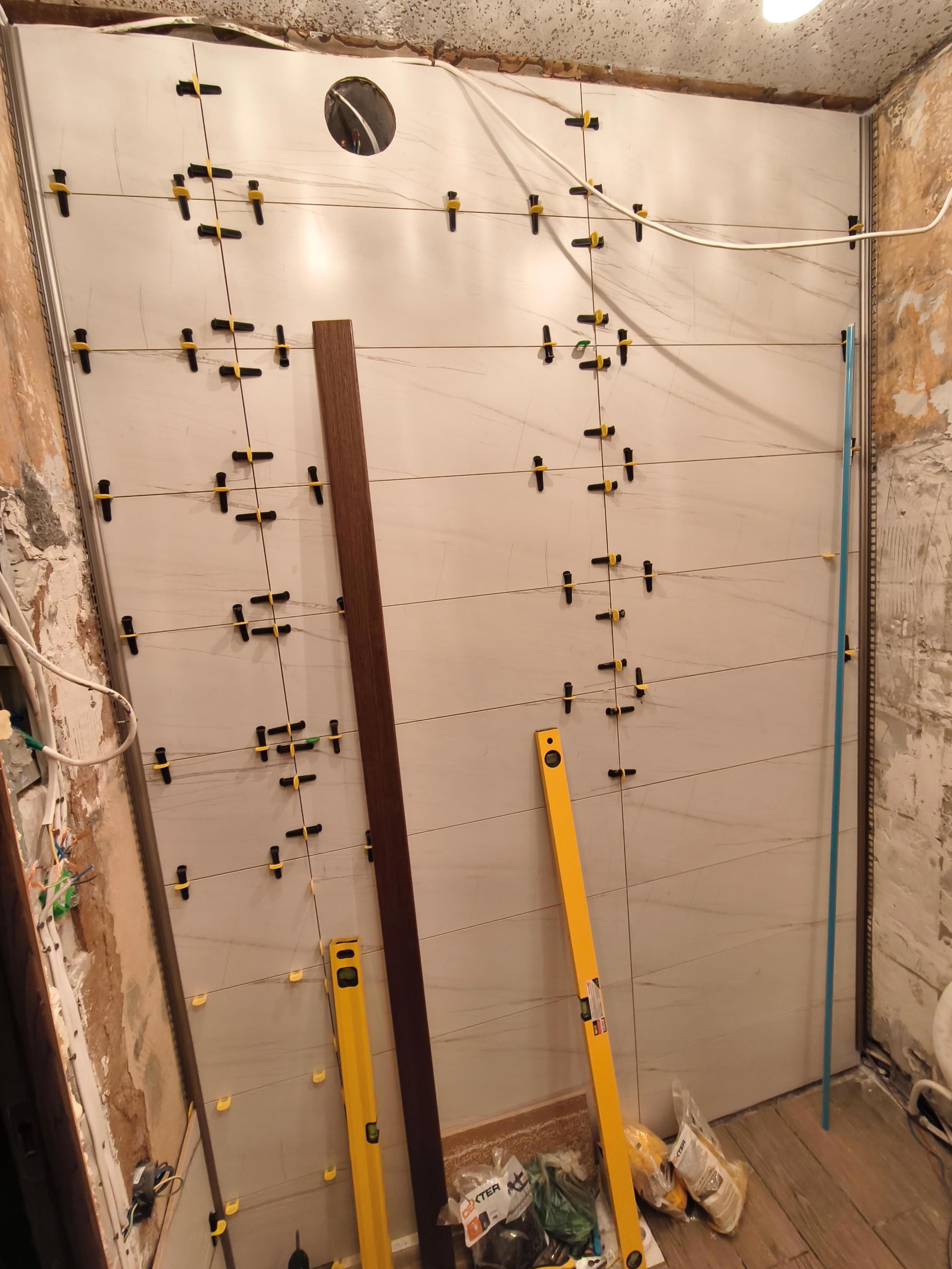 Внимательные заметят, что теперь плитка лежит на противоположных стенах от входа в ванную.