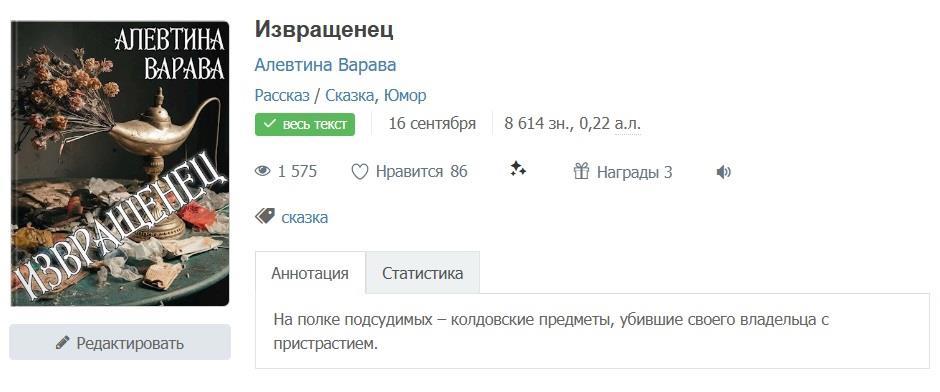 Ваш лайк произведению благотворно повлияет на психику автора (ссылка)
