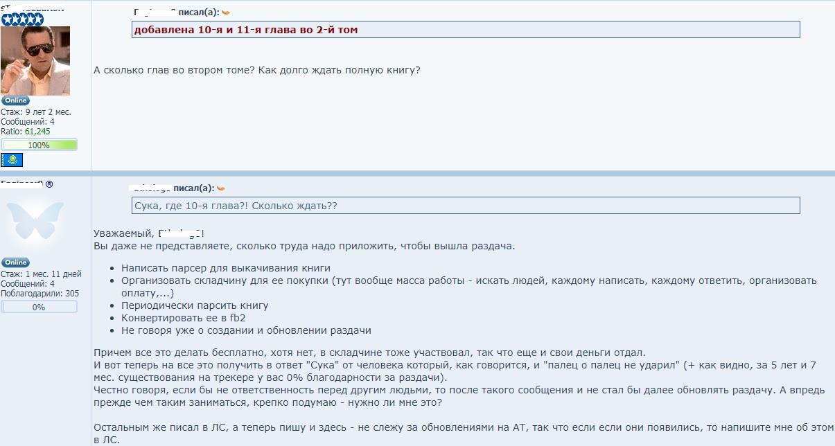 Так вот эта пьеса получила новое, любопытное развитие. Объявился владелец раздачи на торренте и начал объяснять как трудно и непросто пиратить Вязовского. Посочувствуйте ему!