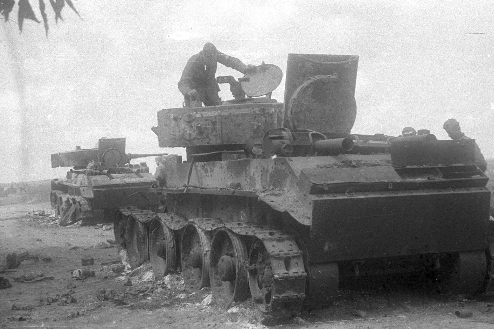 Бой немецких Т-4 с нашими Т-26 и БТ у Александровки. 24 июня гибнут в танковом сражении 37 и 38 тп, 19 орб и 152 отб. Немцы отрапортуют о 150 уничтоженных советских танках, записав туда и три десятка бронеавтомобилей). Но восстановить подробности разгрома 19-й тд во встречном бою с немецкими 13-й и 14-й танковыми дивизиями во второй половине дня 24 июня в районе Войница-Александровка не получается.