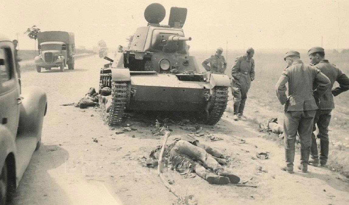 И да - вот вроде как потеря сотни наших танков. И немцы с австрийцами старательно все фотографируют. И в принципе можно убедиться - да сотня наберется, хотя стоит и не кучей. Много фото. На представленных тут - 36 наших легких танков насчитал. Так что да. Нет основания не верить. Соответствует.