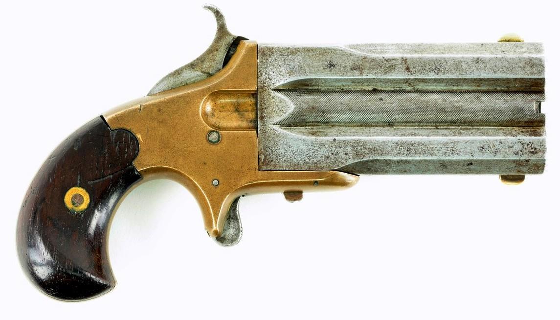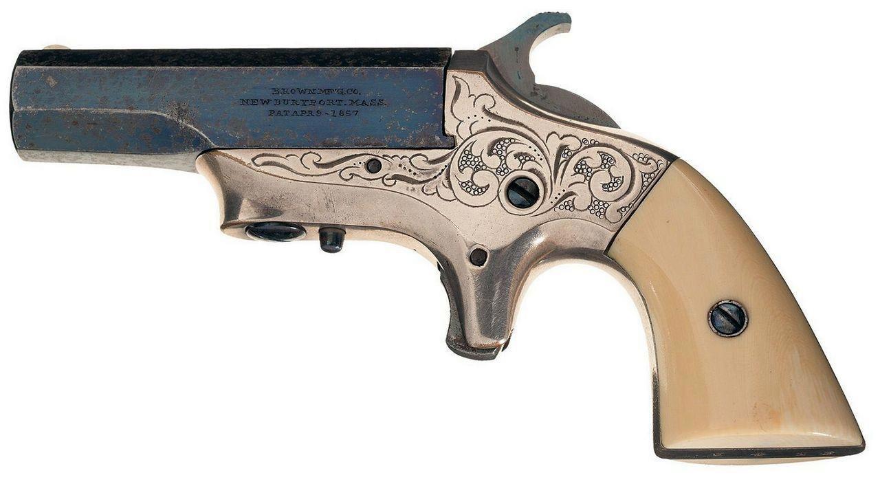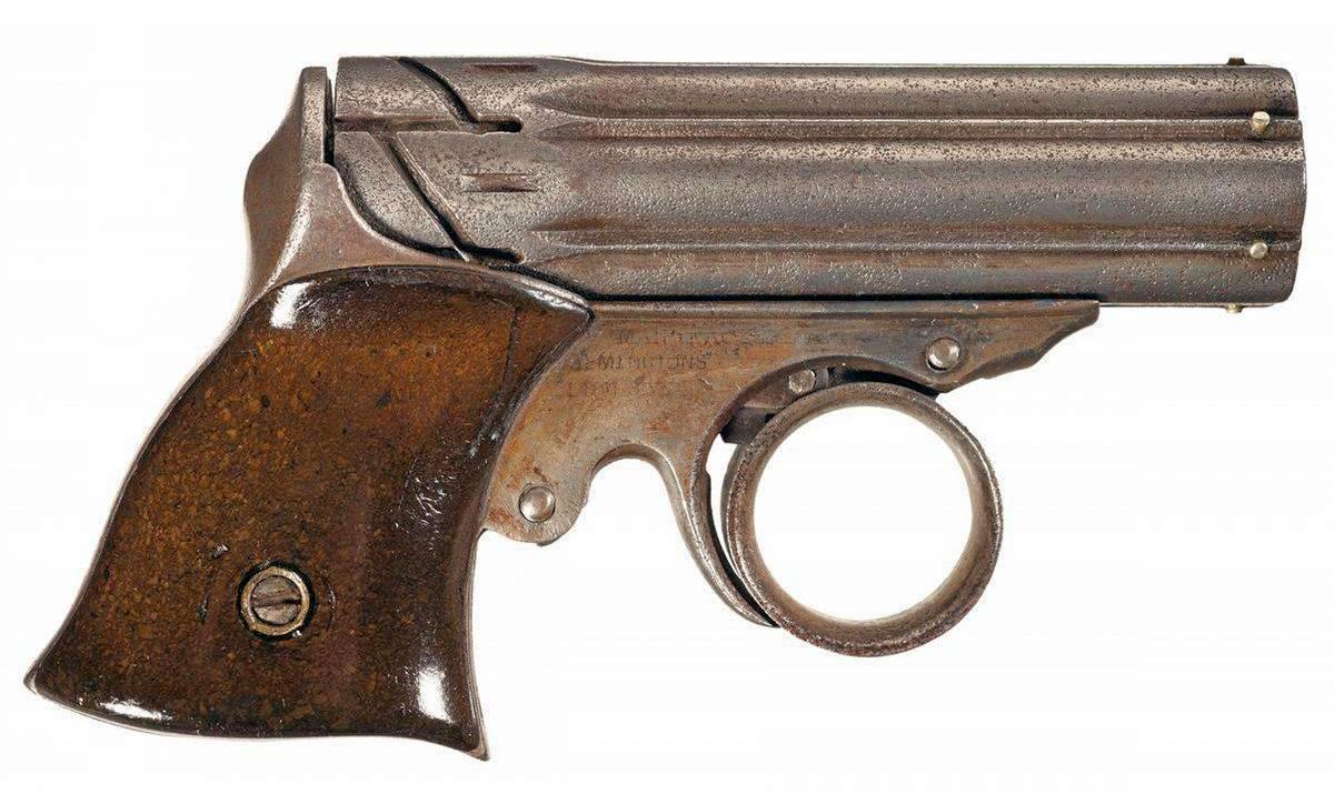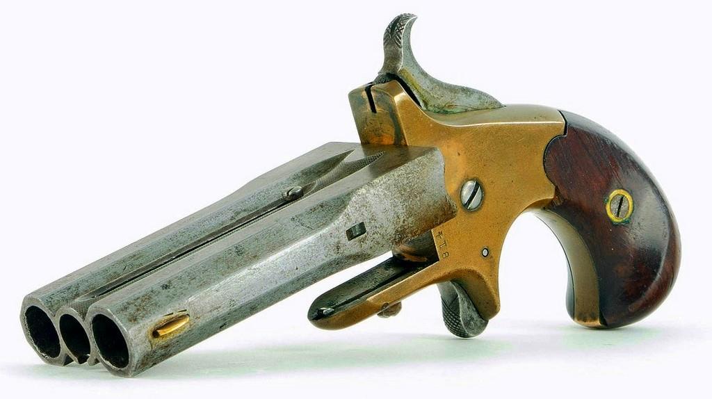 Первые «родственники» дерринджера появились почти сразу. Вот, например такой образец. Это «Colt Cloverleaf Model Deringer»: