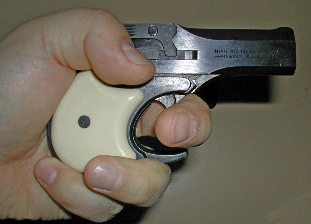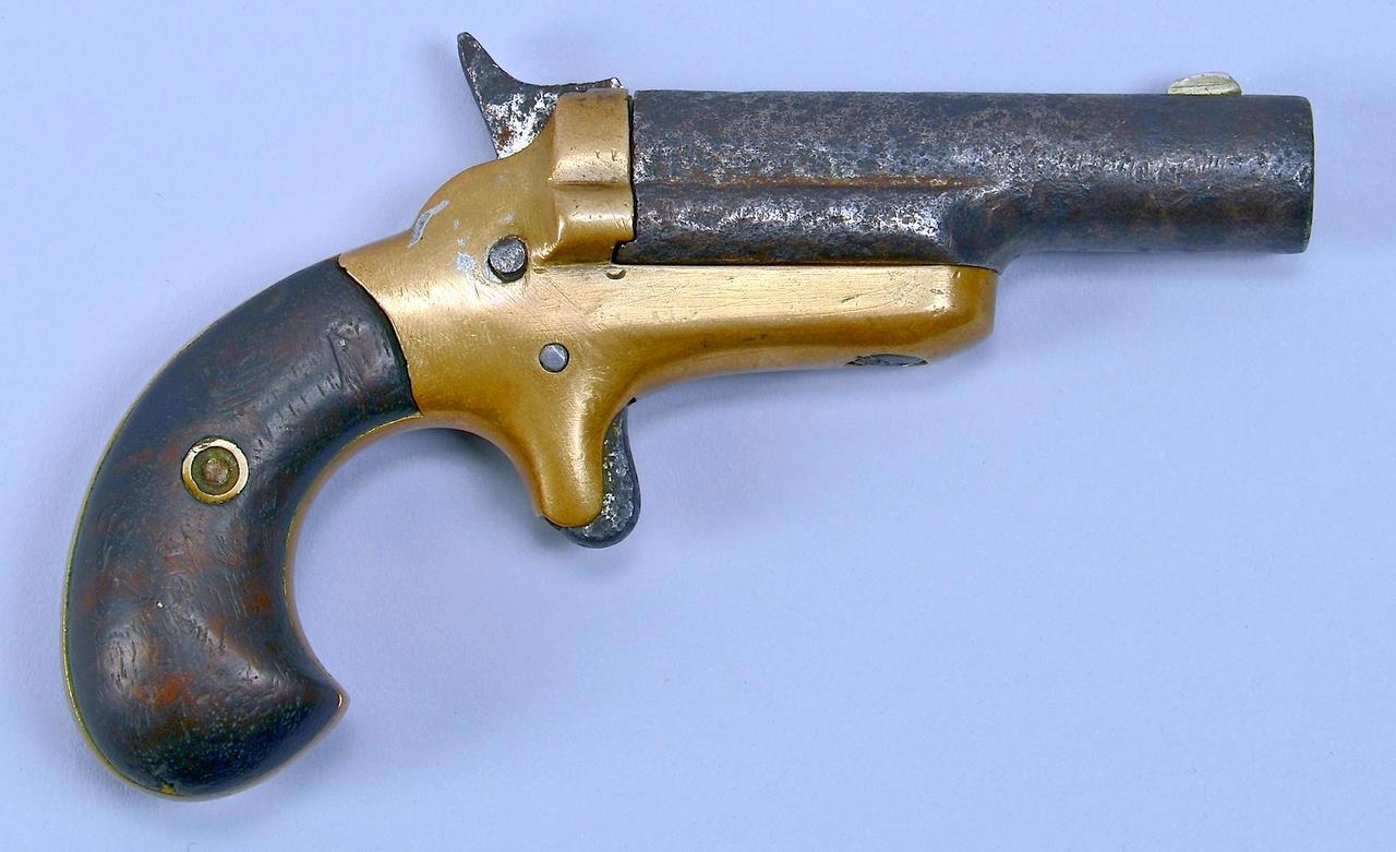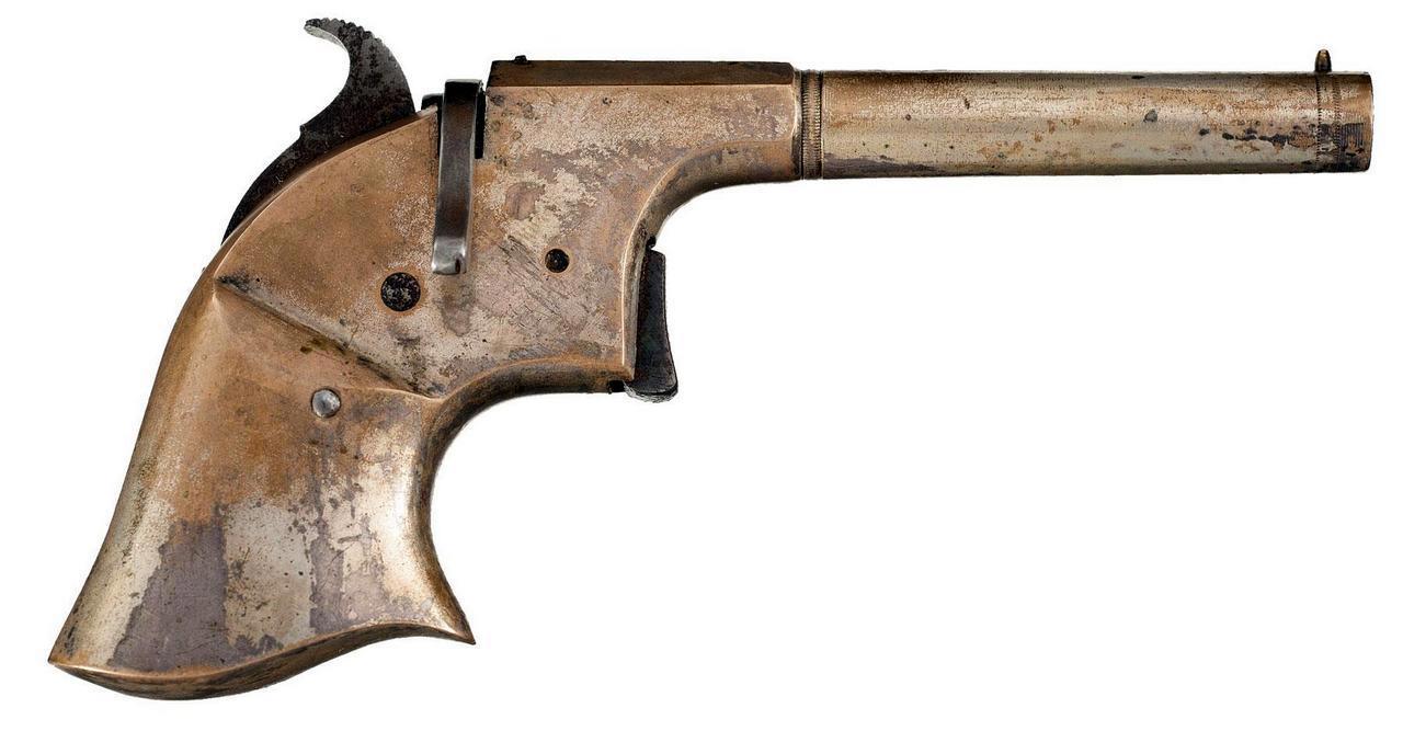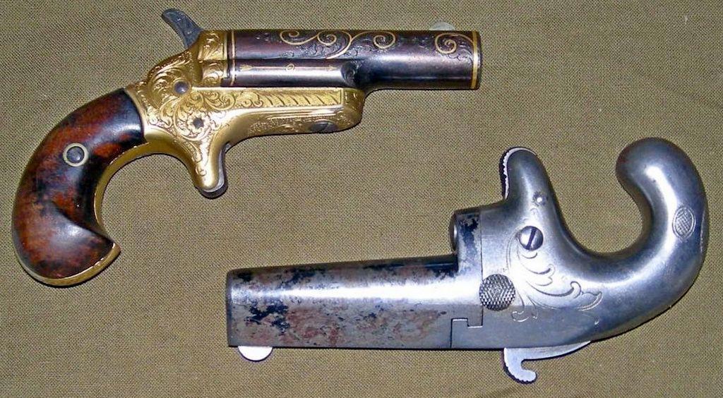 Первый такой маленький пистолетик был сделан в середине 19 века и стал таким успешным, что его название стало нарицательным. Только одна маленькая деталь была изменена. По-настоящему он звался deringer, но потом произошла нелепая ошибка и сейчас это название пишут с двумя буквами R. Ага – это «derringer».