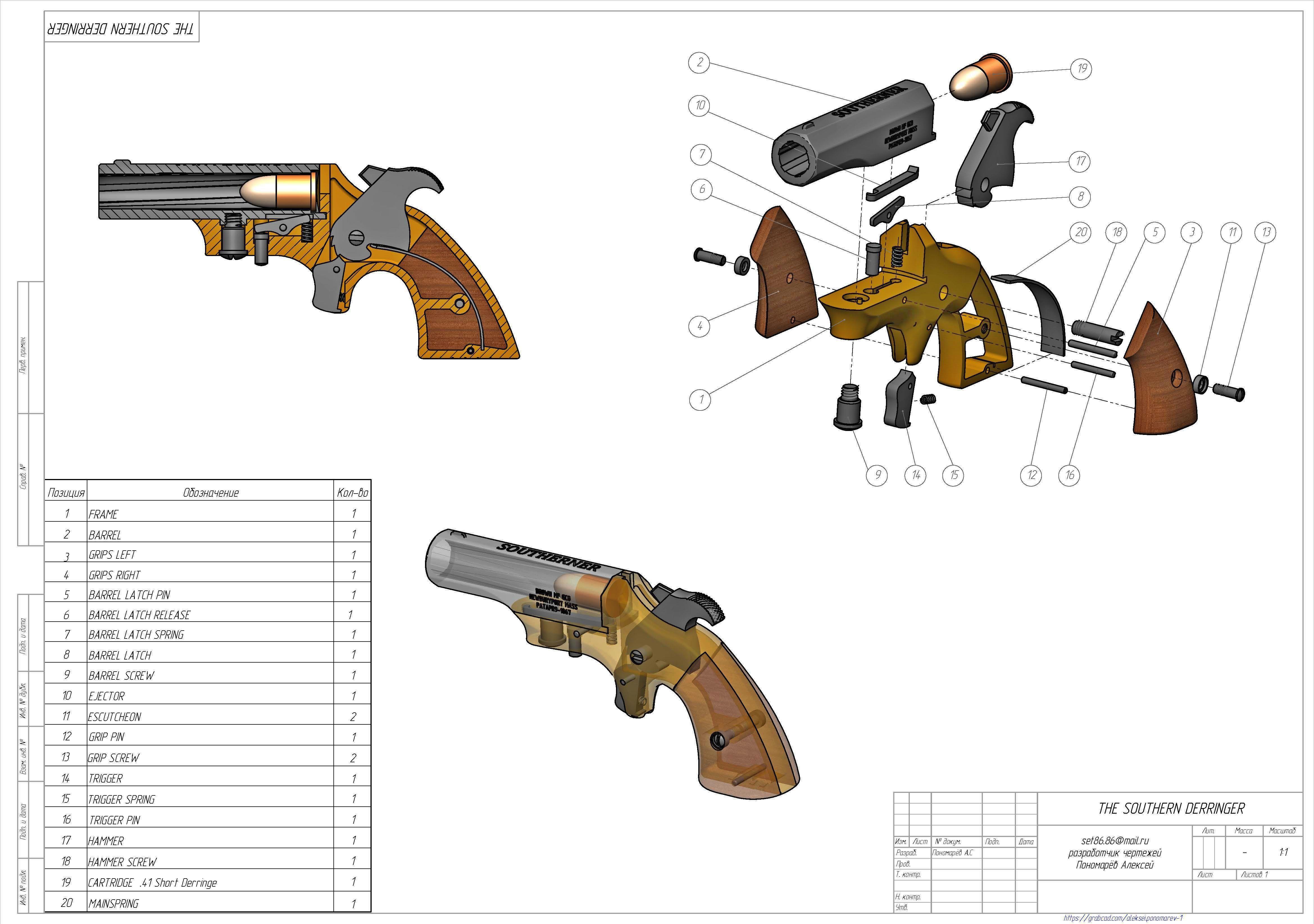 Вот ещё один одноствольный «дерринджер», аналогичной конструкции от другого производителя. Называется «Southerner Derringer»:
