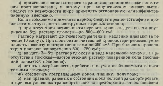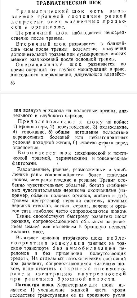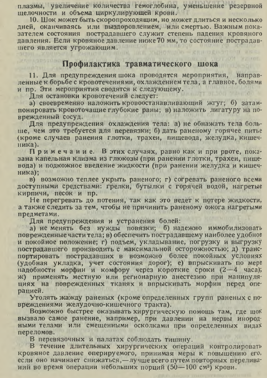 Автор: stidvagnМедленно осиливаю наличную у меня медицинскую литературу времён ВОВ. В данном случае прилагаю инструкции по борьбе с травматическим шоком раненых из "Военно-санитарного справочника" обр. 1941-ого года (довоенного) и "Военно-полевой хирургии" обр. 1942.