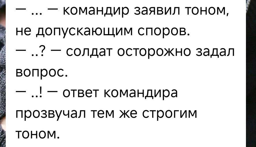 Автор: Владислав ГлухКогда я писал главу, возникла такая необходимость: показать речь персонажей, но в скрытой форме. Типа, маленькая девочка слышала, как говорят иностранные солдаты, и в какой интонации, но слов разобрать не могла. Она не знала языка. Сложность ещё была в том, что я пишу в рамках вымышленного мира, и придумывать отдельный язык для коротких вставок — несоразмерная запара. Ну, я и решил отметить речь троеточиями: