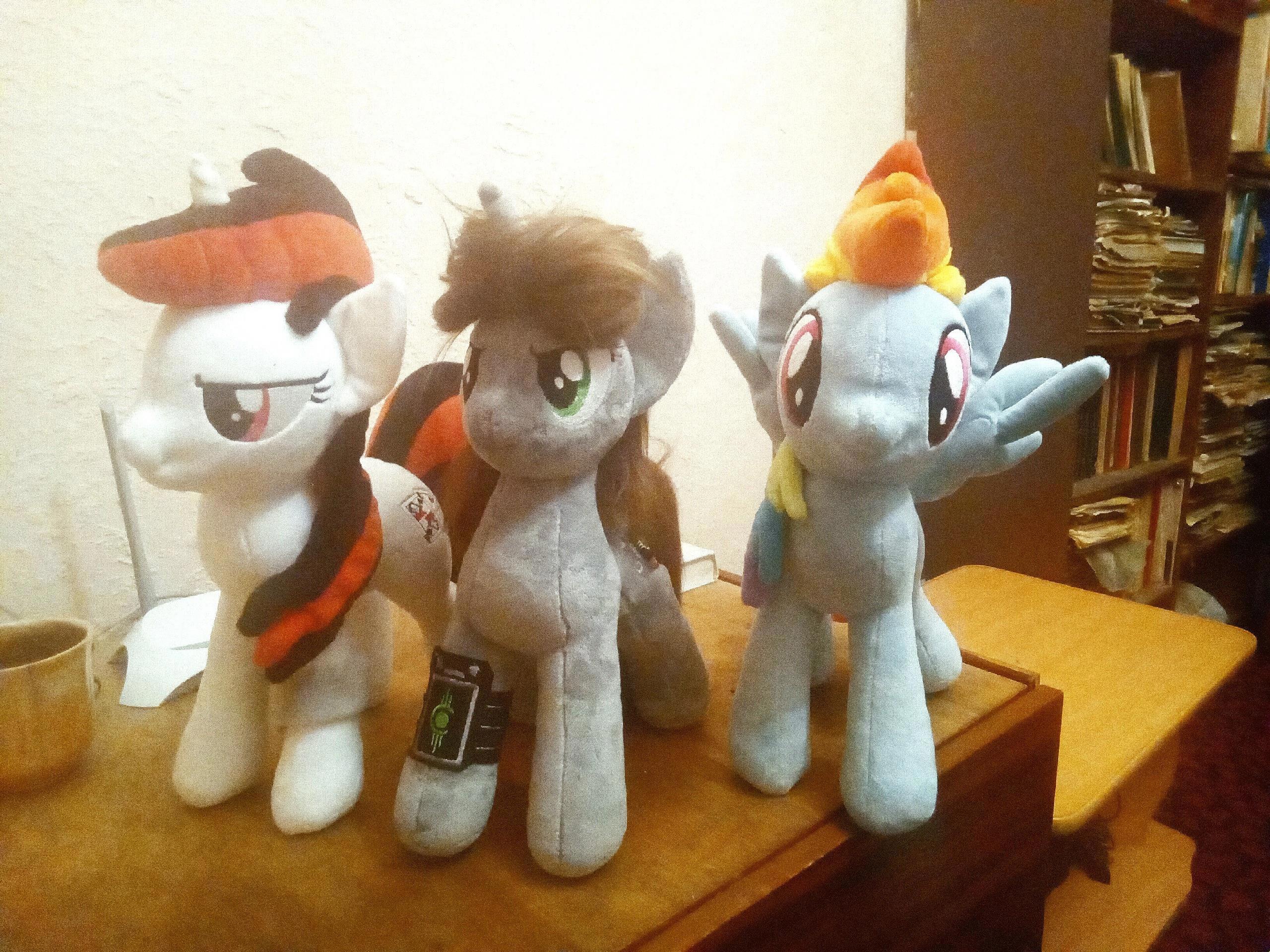 2) Дома есть три плюшевых пони.