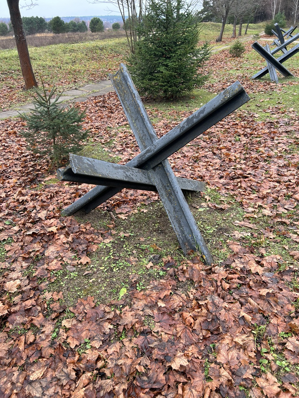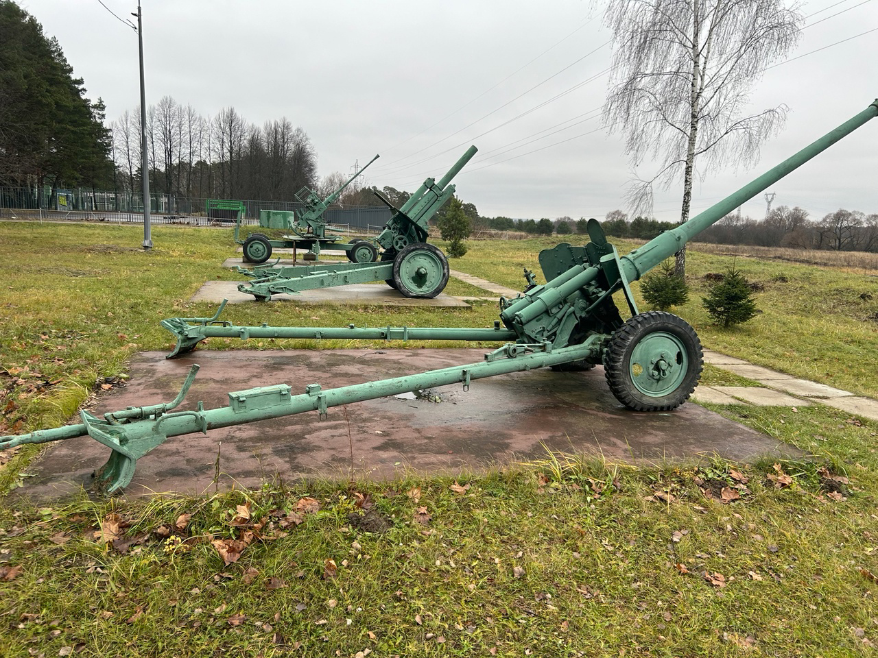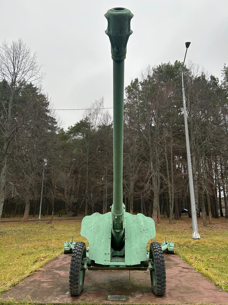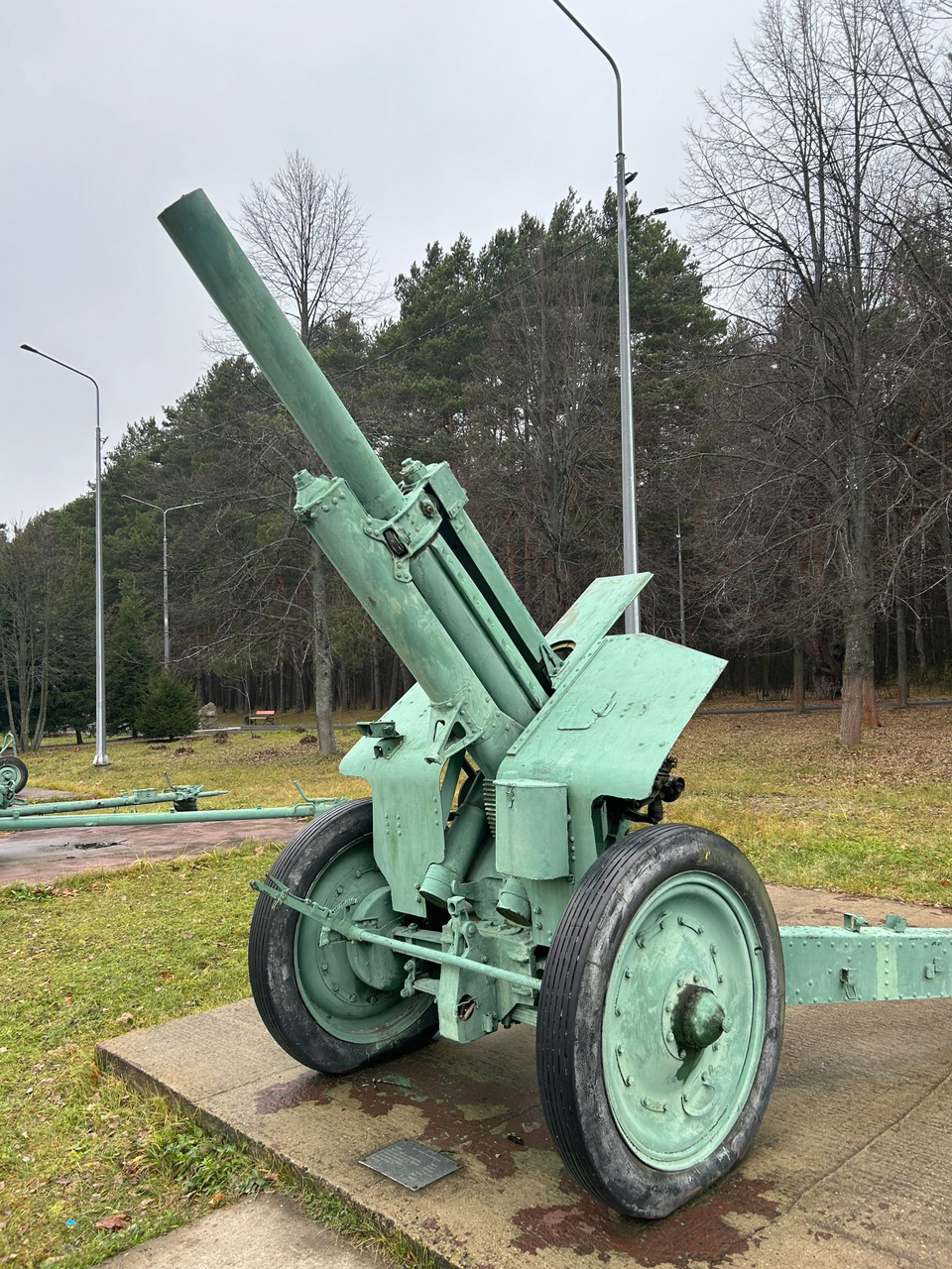 Окопы само собой современного производства, часть инсталляции если можно так выразиться. Насчет «ежей» тоже не уверен что они действительно тех времен. Но вот орудия - это уже однозначные свидетели и участники боевых сражений 1941-1945 годов. Таблички с названиями и характеристиками забыл сфотографировать, так что угадывайте сами где что есть.
