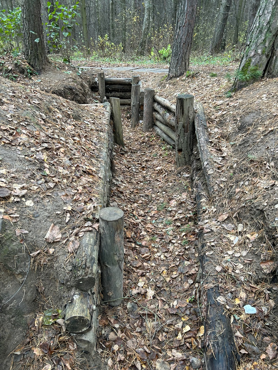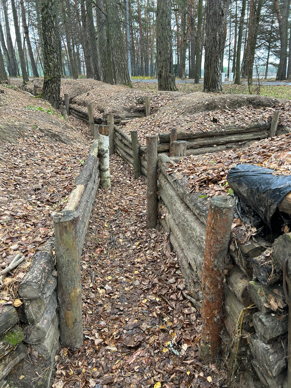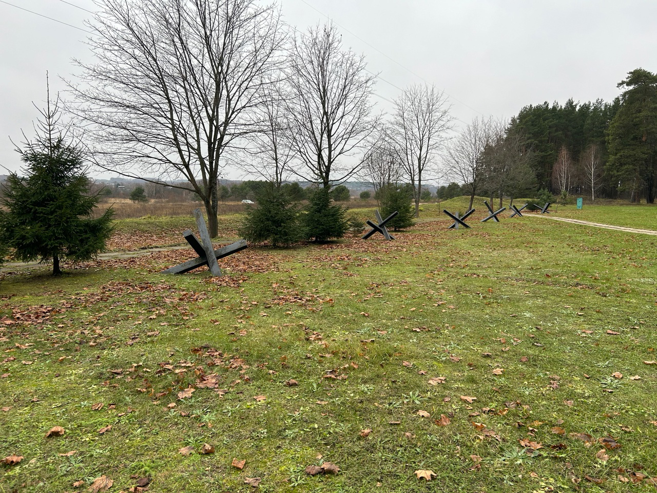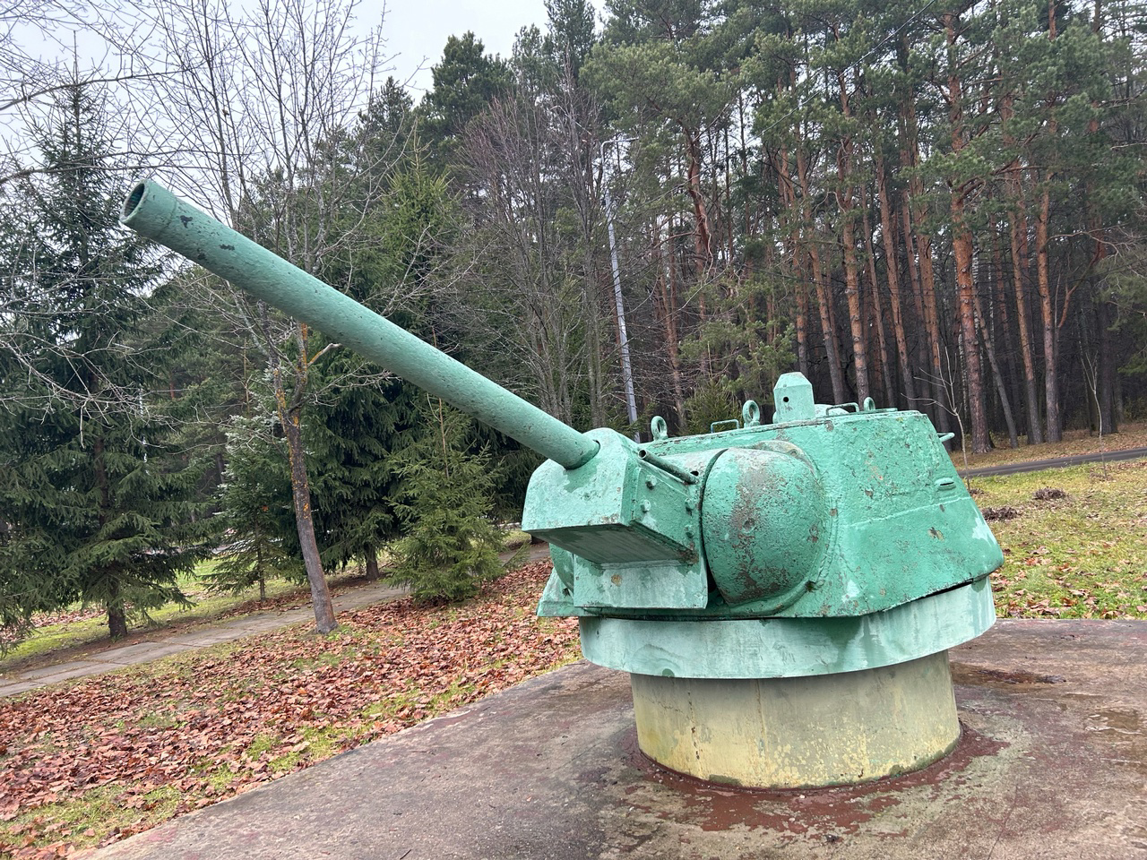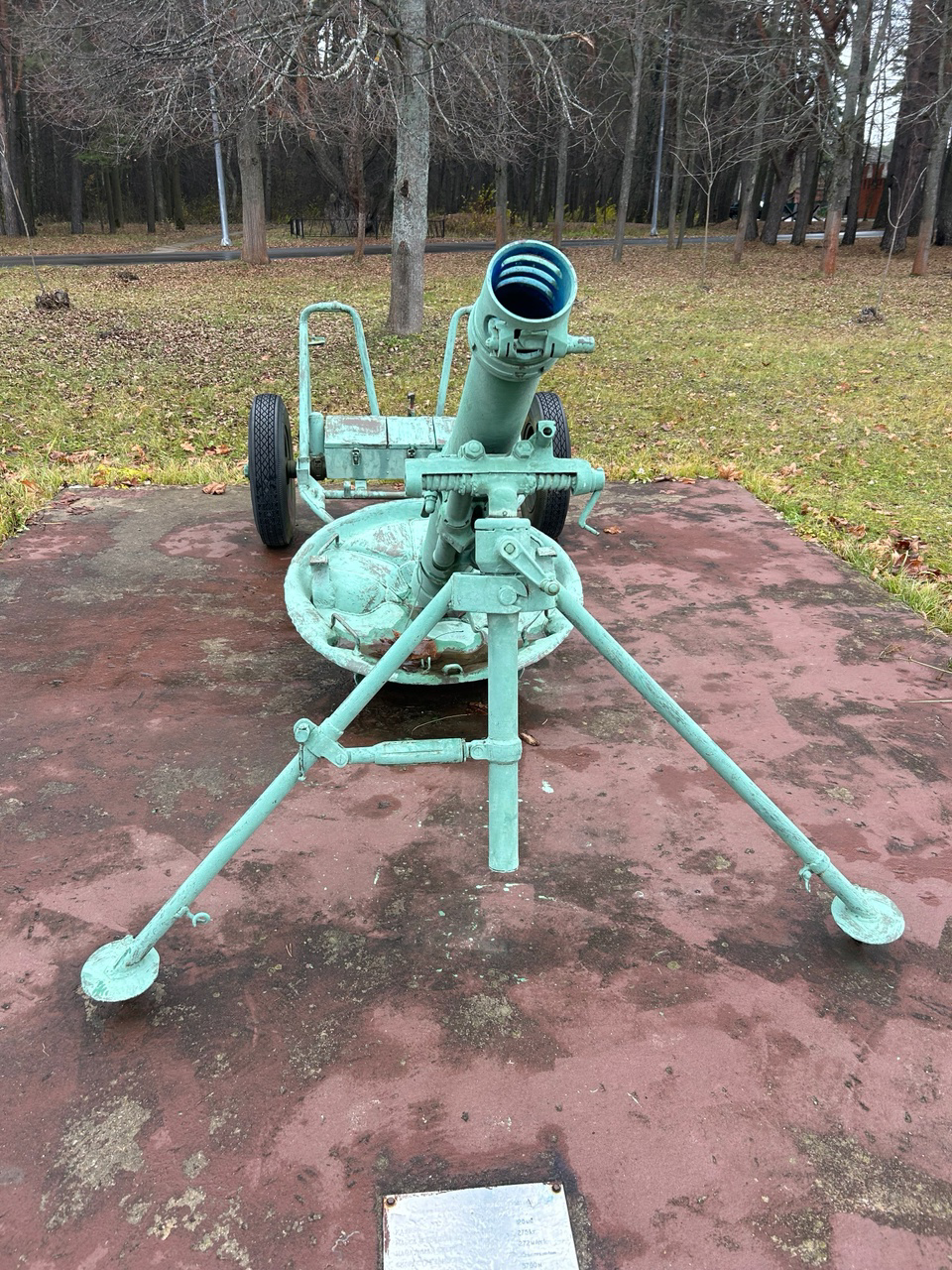 Окопы само собой современного производства, часть инсталляции если можно так выразиться. Насчет «ежей» тоже не уверен что они действительно тех времен. Но вот орудия - это уже однозначные свидетели и участники боевых сражений 1941-1945 годов. Таблички с названиями и характеристиками забыл сфотографировать, так что угадывайте сами где что есть.