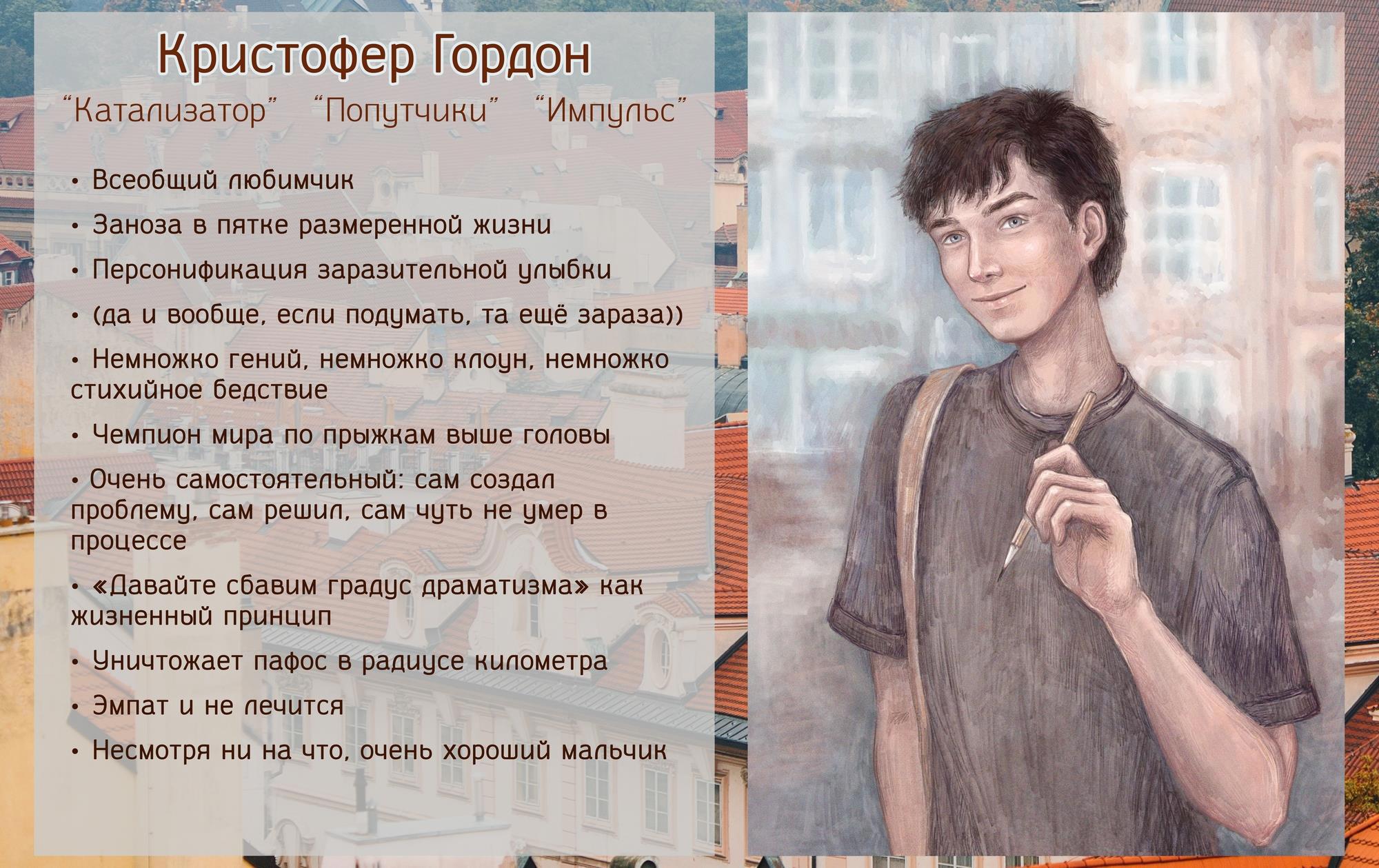 1. Тот самый гиперактивный младший брат Кристины, который украл у неё имя :) Ходячая катастрофа, балабол и позёр. По совместительству – один из самых талантливых студентов кафедры полевой (другими словами – магической) физики.
