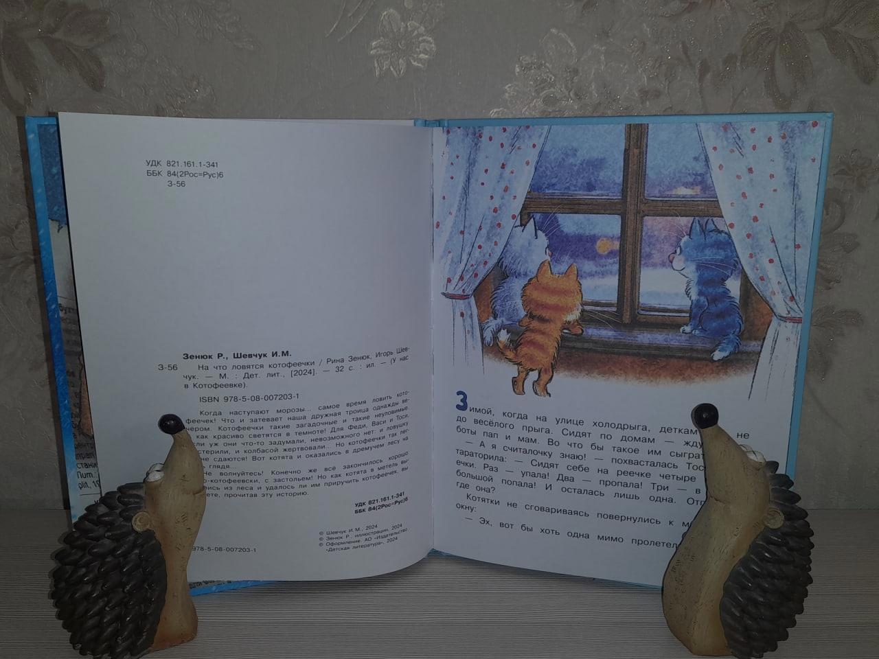 Если что – у «Детской литературы» это целая серия историй. Моим детям-школьникам уже поздновато, но вот как подарок тем, у кого дети лет от четырёх до шести-семи – серия книжек «У нас в Котофеевке» просто идеальна. А «На что ловятся котофеечки» как раз рекомендую как новогодний подарок.