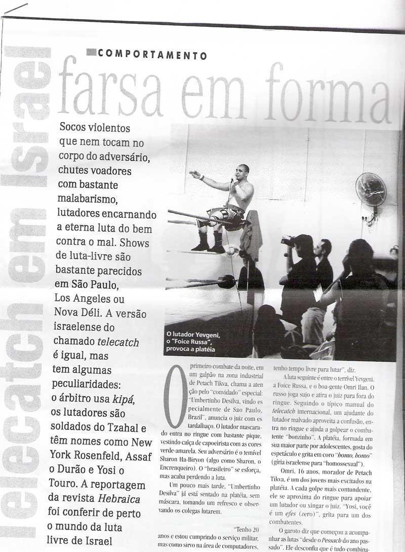 2. Засветился на британском телевидении и в бразильской газете. - Шоу по рестлингу, где я выступал, показали по британскому The Wrestling Channel. Наверное, не зашло, потому что больше не показывали. Годом позже бразильская газета запостила репортаж опять же о рестлинге. Даже угораздило попасть на фотку.