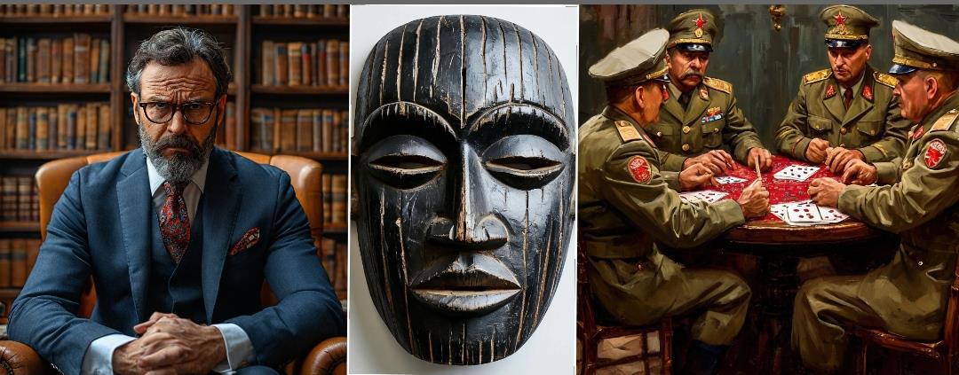 А надо сказать, что даже местный кот Тимофей и уличные голуби с воробьями, знали что психолог пишет преддиссертациионный материл на тему буржуазной лже теории о действии материальных суеверий на психику. Он в каждой лекции раза три это упоминал, и минимум по разу на собеседовании, давя на то что все ти тотемы, фетиши и прочие предметы культа никакой псевдомагической нагрузки не несут ибо все это самовнушение. Короче лектор спер эту маску, а на следующий день на работу не вышла, типа приболел и это означало, что хохма удалась…
