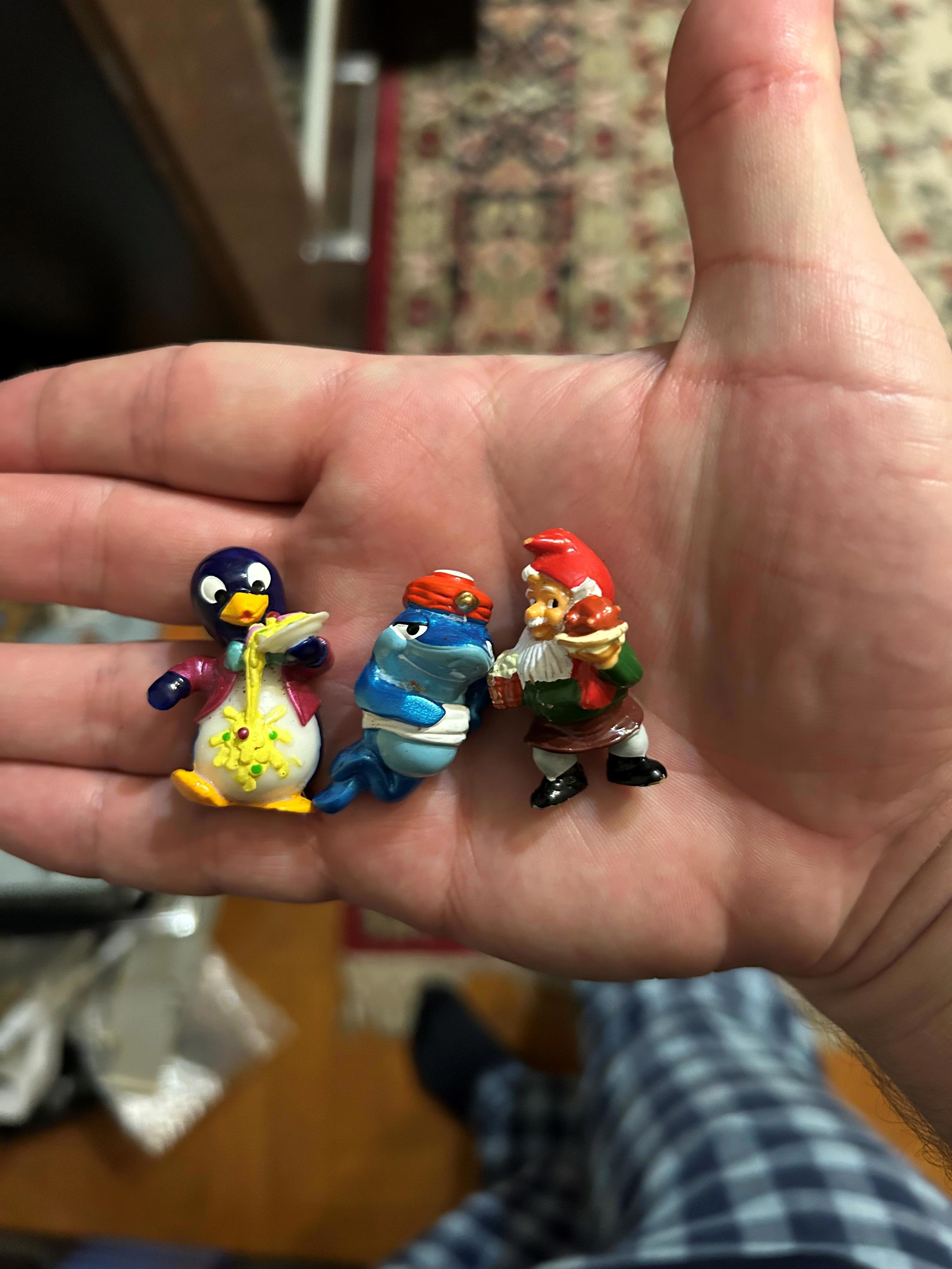 И еще отмечу тот факт, что игрушки тех годов были интереснее чем сейчас. Несколько лет назад активно баловал жену Киндерами, и где-то в шкафах лежит целая банка с игрушками не старее 5-6 лет. Могу смело сказать что нынешние игрушки стали проще. Почти нет механики, каких-то сложных шарнирных элементов, ярких цветов. По сути остались фигурки, простые сборные модельки, машинки, и тому подобное. Качество и разнообразие не то чтобы сильно, но все таки просело…