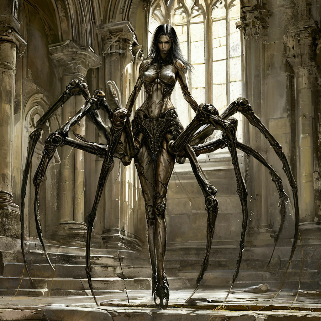 А можно пойти другим путем и просто попросить кентавропаука. В смысле, гибрид девушки и паука. Времени уйдет, наверное, столько же.