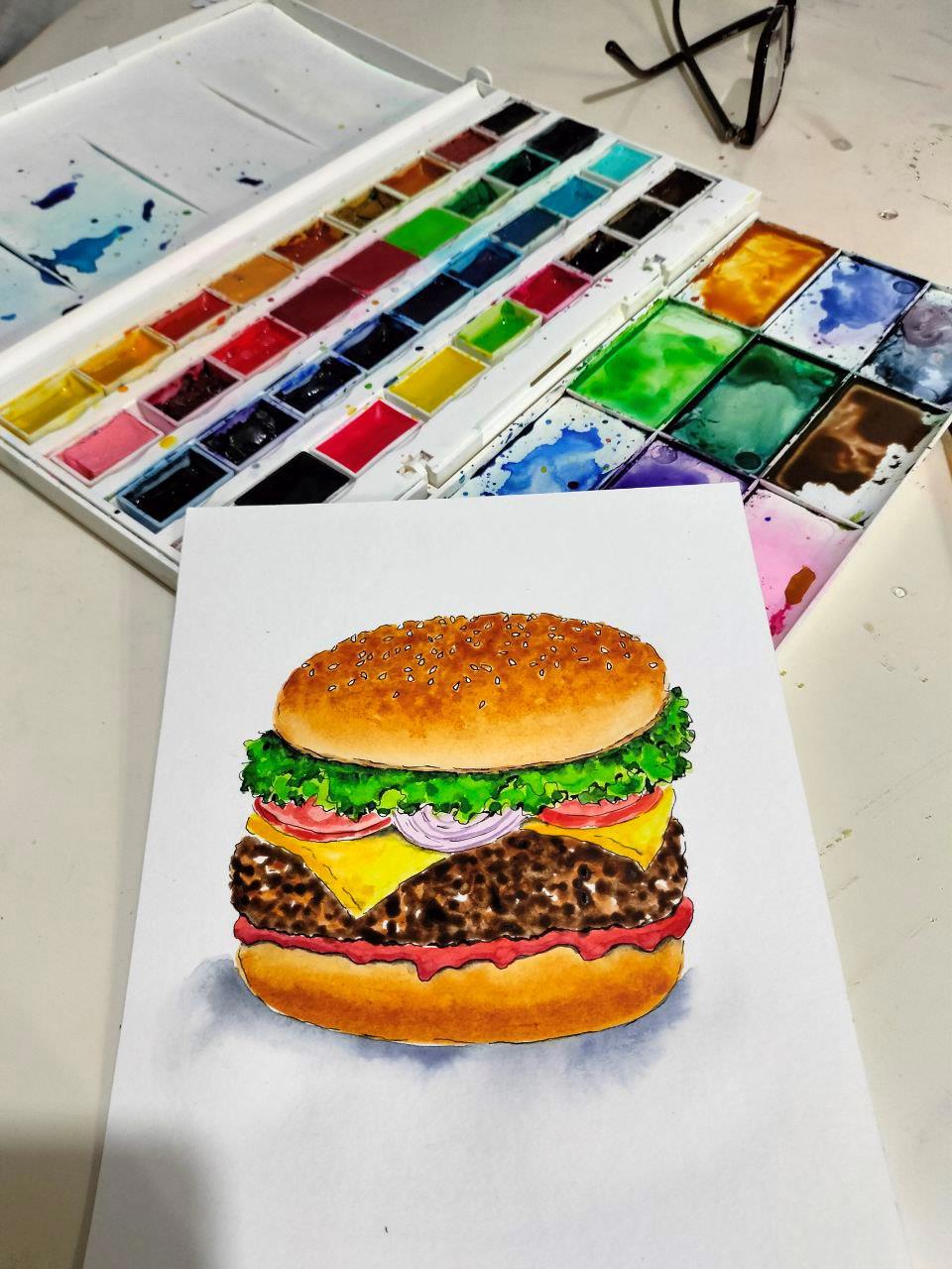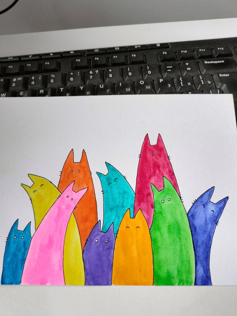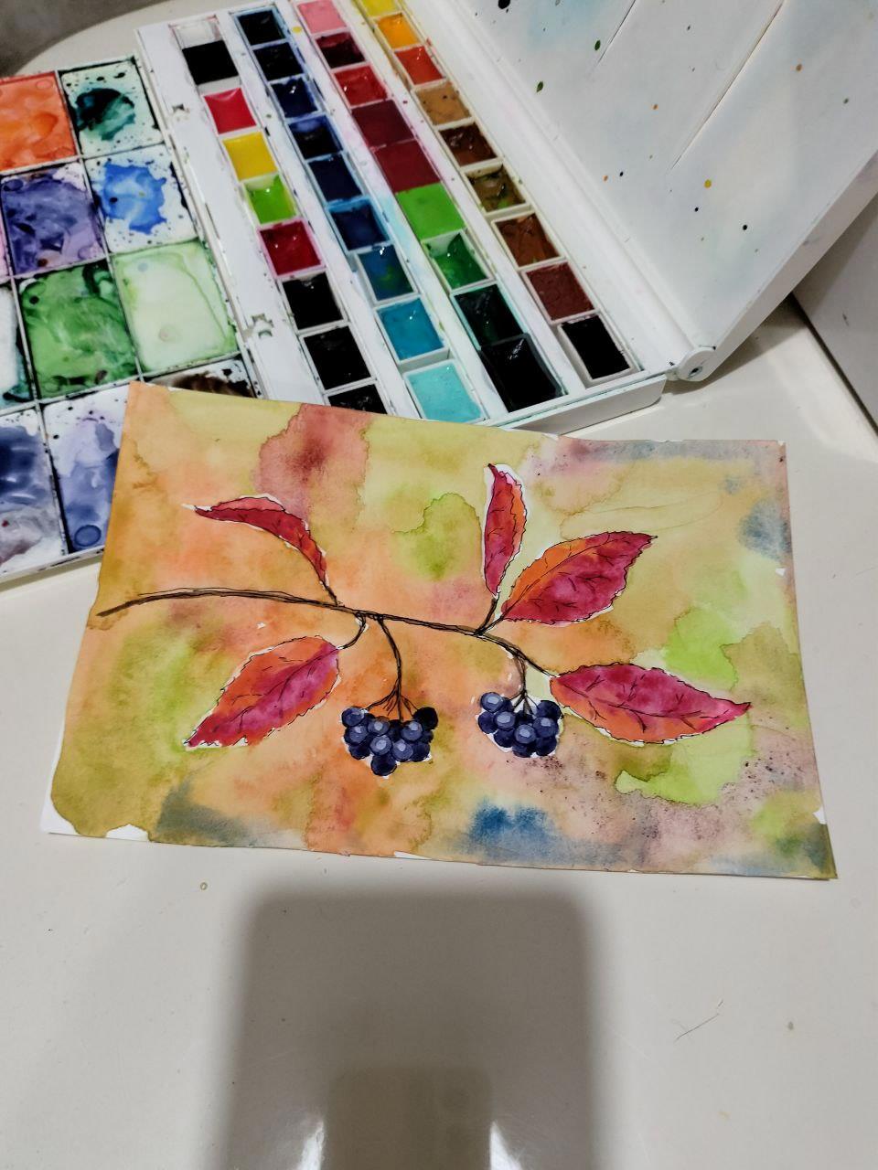 Зато хоть достала краски, добавила новые кюветки (снова не устояла от покупки, на этот раз - скидка от "Малевич"), и немного порисовала для антистресса и дзена. Рисунки послала друзьям по переписке.
