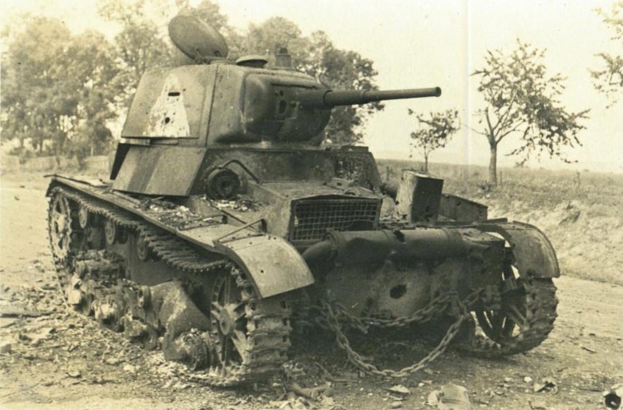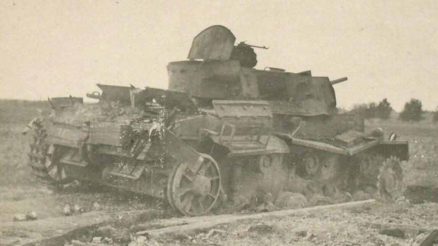 Кроме танков там и всякий гарнир пострадал. Попалось фото нашего танка убитого сблизи немецкой Флак-ахт кома ахт - с 50 метров. Сожженный примерно в полукилометре южнее Забрамье Т-26 67-го тп. Хорошо видна пробоина от снаряда стрелявшей с кладбища тяжелой 8,8см зенитки.