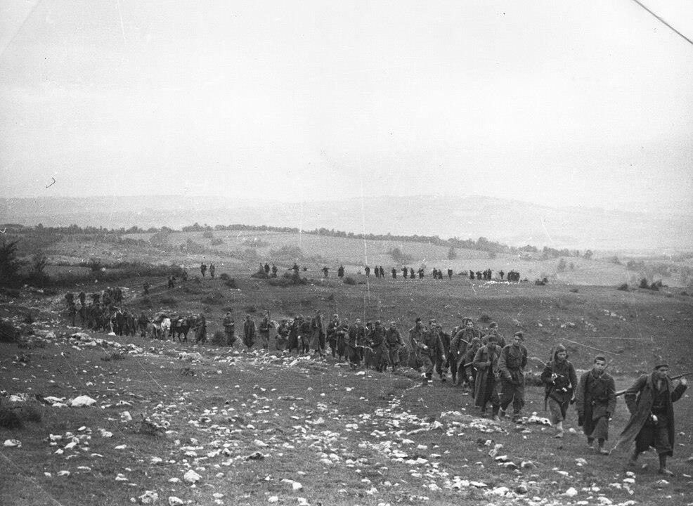 Бойцы 6-й Ликской дивизии на марше от Купреса к Дрвару