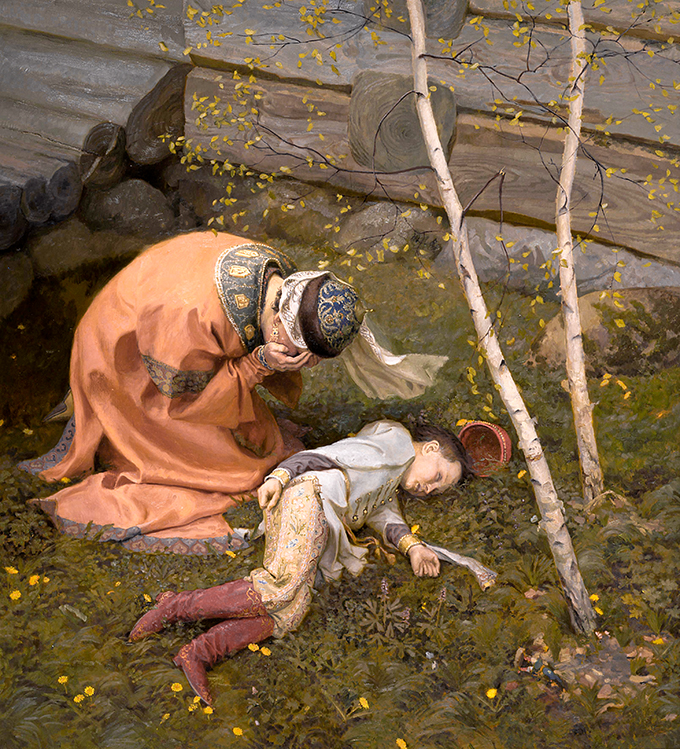 Что касается царевича Дмитрия, то с его гибелью связано множество тайн и неясностей. Царевич Дмитрий погиб 25 мая 1591 в Угличе, играя в "тычки" – игру с ножиком: на земле проводится черта, через которую бросают нож, стараясь, чтобы он воткнулся в землю как можно дальше. Спустя какое-то время Дмитрий Иоаннович был найден мёртвым: его горло было перерезано. Свидетелей не оказалось. Кормилица Арина Тучкова тоже ничего не видела. Поднялись крики. Со двора выбежала мать Мария Нагая, увидела случившееся и начала бить мамку поленом. Она объявила виновными Осипа Волохова (сын мамки), Даниила Битяговского (сына Михаила Битяговского) и Никиту Качалова. В Угличе зазвучал набатный колокол и собралась толпа. Михаил Битяговский начал успокаивать толпу, и после первых же слов об успокоении был осыпан камнями.