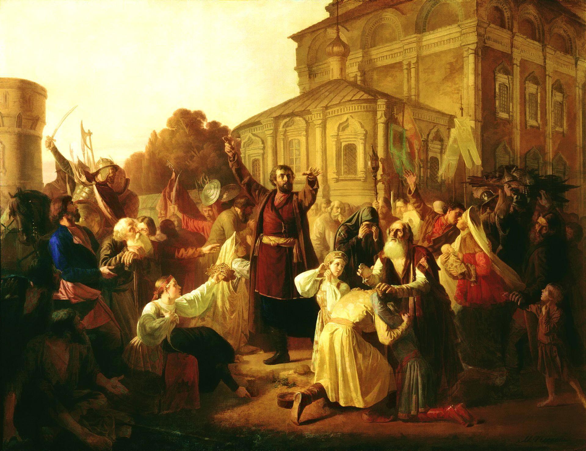 Начались постоянные сходки: рассуждали о том, откуда взять людей и средства. С такими вопросами обращались прежде всего к Минину, и он подробно развивал свои планы. С каждым днём росло его влияние; нижегородцы увлекались предложениями Минина и, наконец, решили образовать ополчение на новых началах, созывать служилых людей и собирать на их содержание деньги.