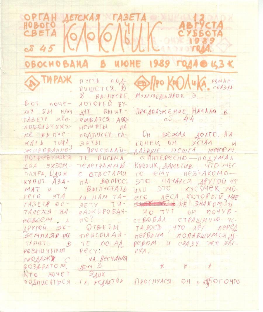 Но мне хотелось, чтобы газета имела несколько экземпляров, как самая настоящая газета. И вот в №45, 12 августа 1989 года, я предложил читателям выпускать газету тиражом в 2 экземпляра.