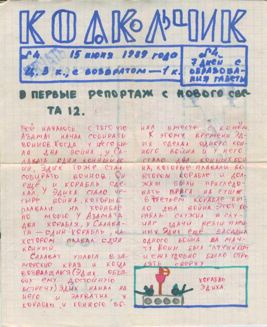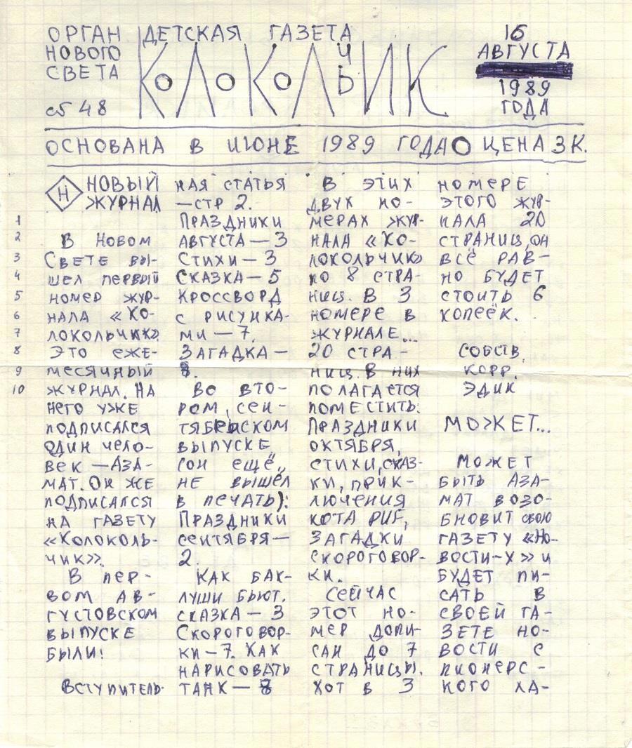 Читатели приняли идею благосклонно, ведь каждому хотелось иметь собственный номер. Для тиражирования газеты я использовал обыкновенную копировальную бумагу. Но всё получилось не так хорошо, как хотелось бы. Первым номером в двух экземплярах стал №48, 16 августа 1989 года. Как можете видеть, во-первых, газета потеряла цветность и стала не такой красочной, как раньше.