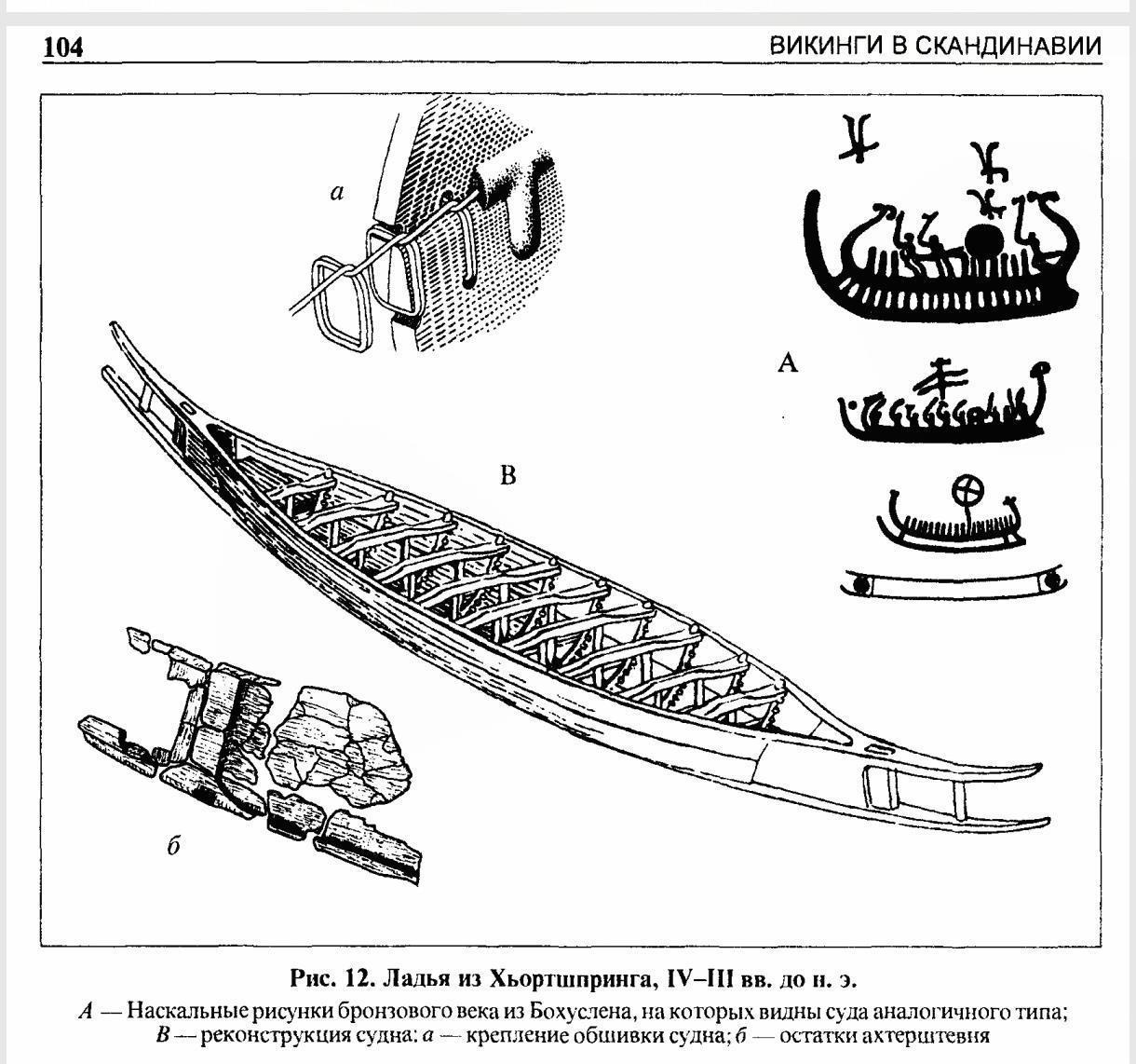 Похожие лодки мы видим на древних петроглифах эпохи бронзы (предшествующая эпоха железному веку).
