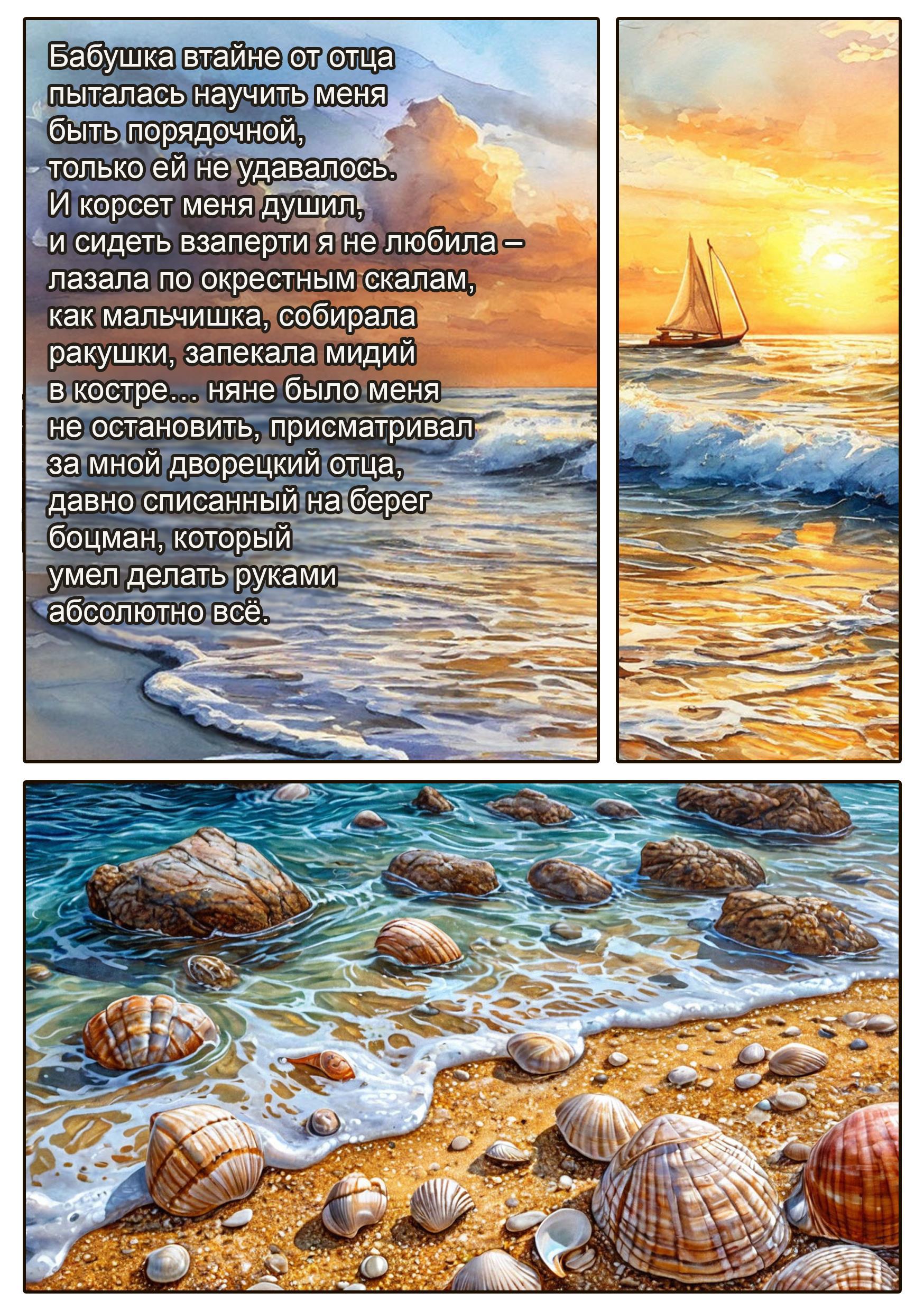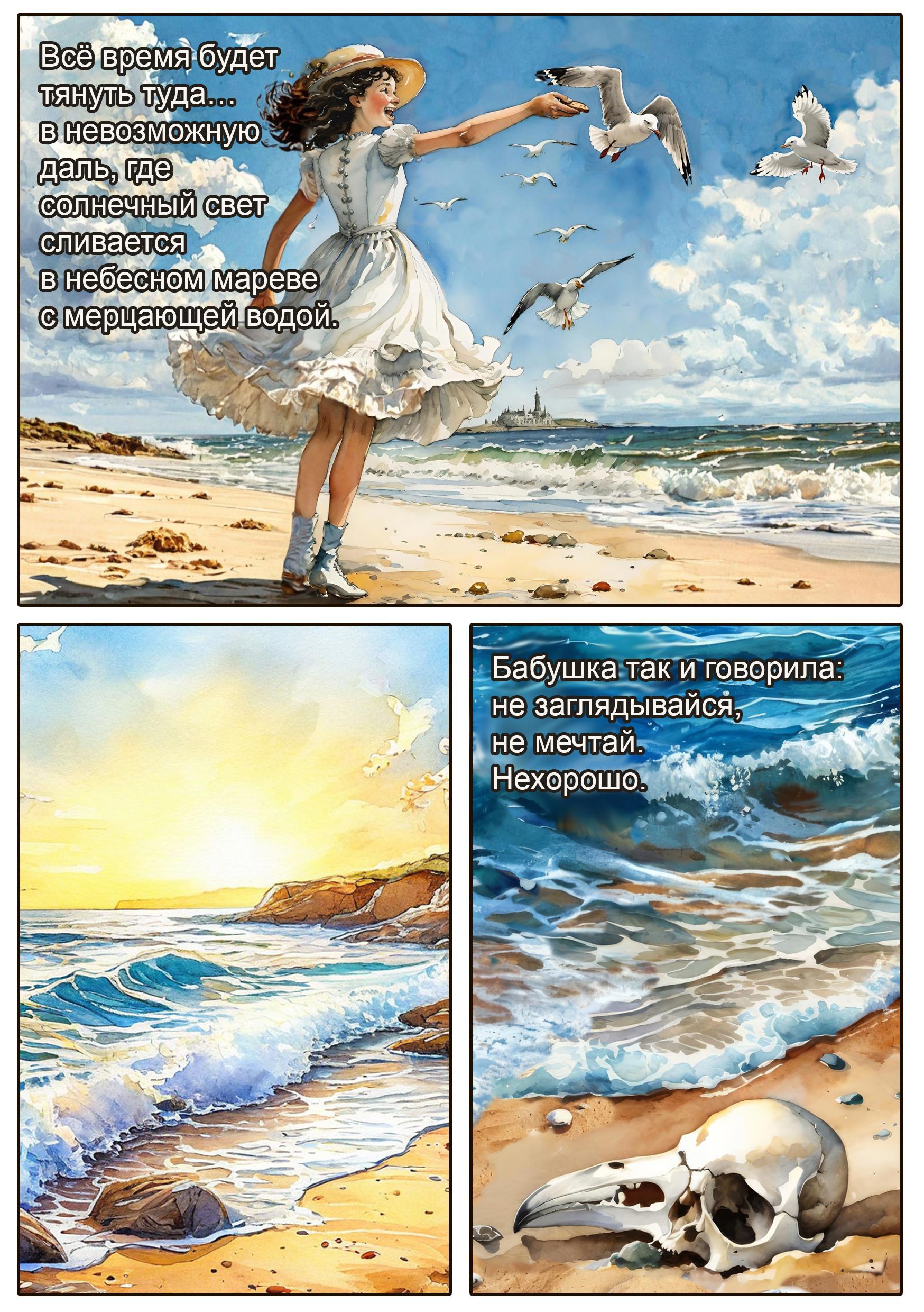 Автор: Макс ДалинТакой мрачной осенью, когда вечера, как Карла говорит, "темней тюрьмы", очень хотелось кусочек счастья. И света. И мы с Векшей сделали самый яркий и счастливый кусок из всех трёх частей "Костра и Саламандры" - счастливое детство героини. Где солнце, море, чайки, сосны, старый дом и куклы, которых мастерил её отец - доброе тепло.