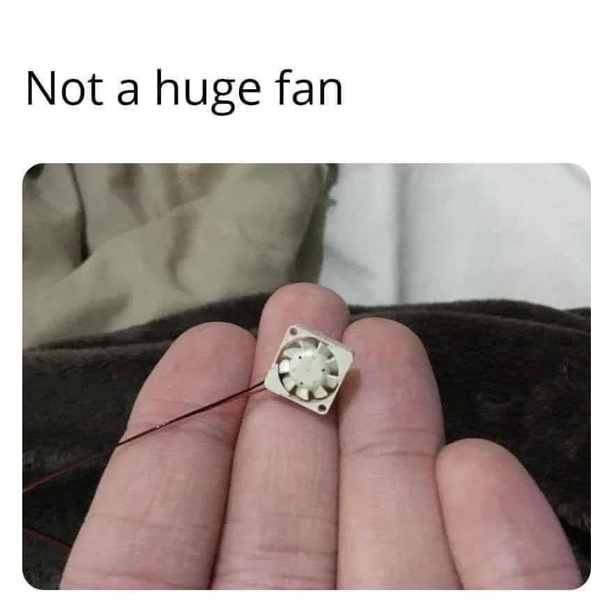 Fan = "поклонник" или "вентилятор", Not a huge fan = не самый большой поклонник