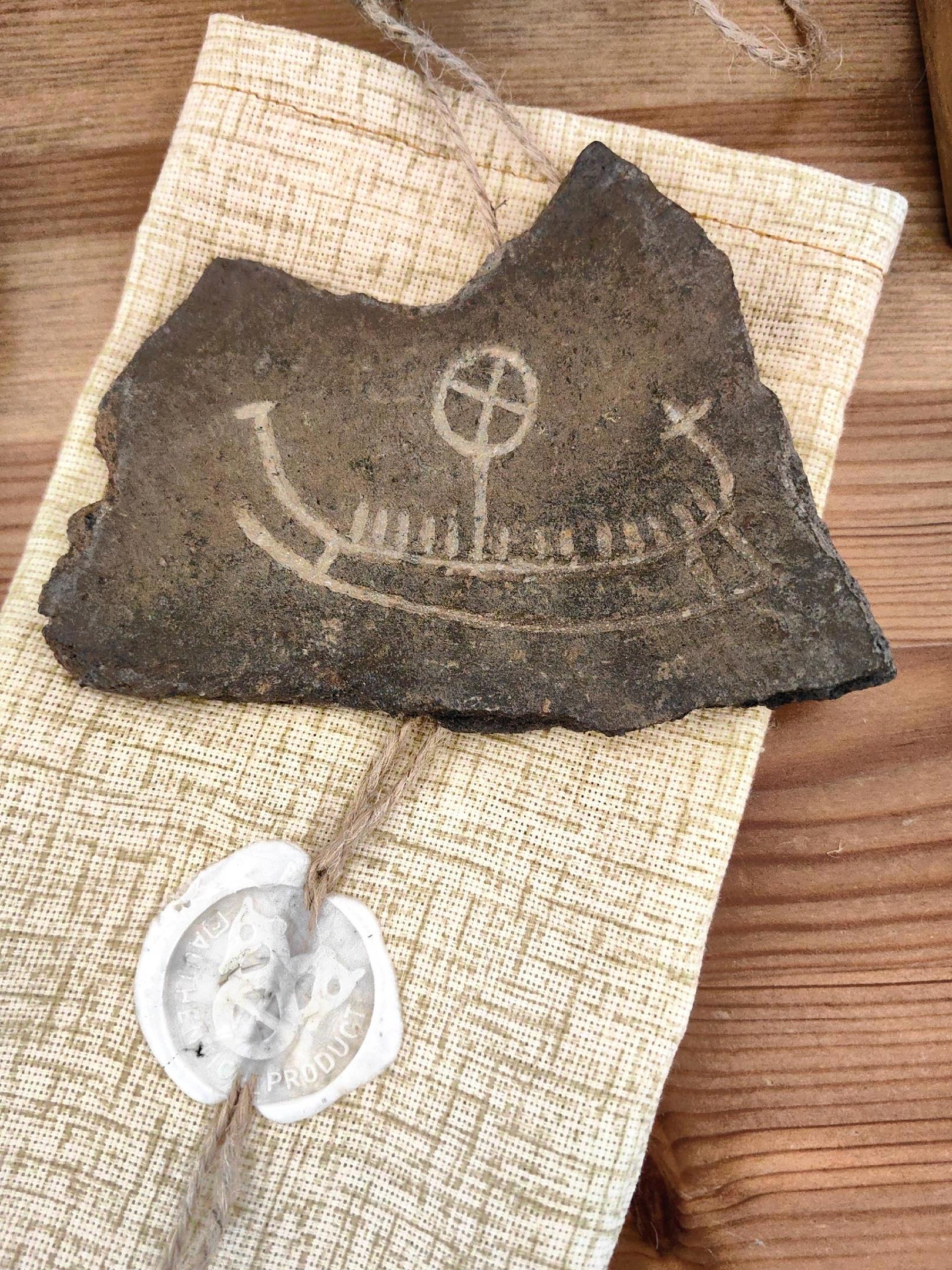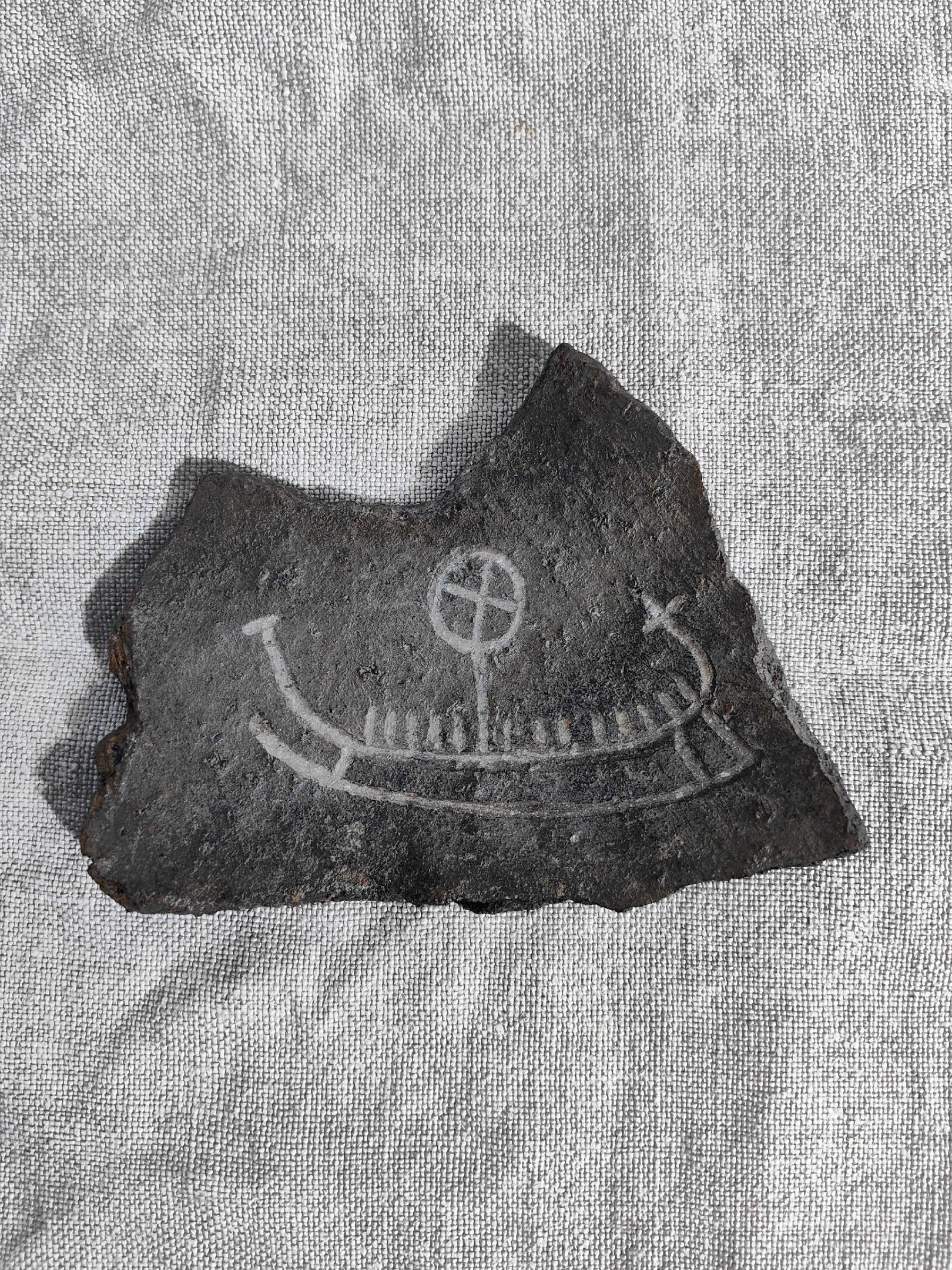 Автор: Варвара ШульеваНа моей родине есть мастер, который режет по дереву, а еще у него можно купить набор рун, вырезанных на осколках древней керамики, и кусочки керамики побольше с архаичным рисунком (рисунок наносится мастером). Рисунок можно заказать свой, что я и сделала. Теперь у меня есть кусочек древней керамики с моей родной земли с рисунком древнескандинавской ладьи эпохи бронзы (XXXV/XXXIII — XIII/XI века до н. э.). Это копия петроглифа (наскального рисунка) из Бохуслена, Швеция.