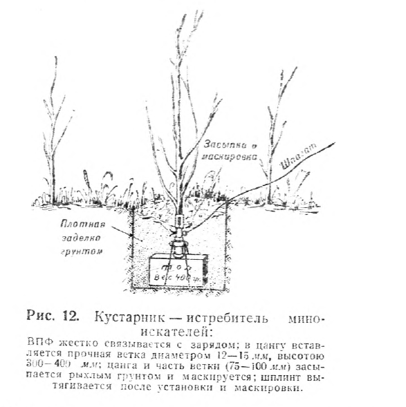Кстати, специально для борьбы с миноискателями наши ещё в 41-ом изобрели следующий вариант использования тротиловых шашек и взрывателя полевых фугасов (ВПФ; изображение взято из наставления по использованию оного):