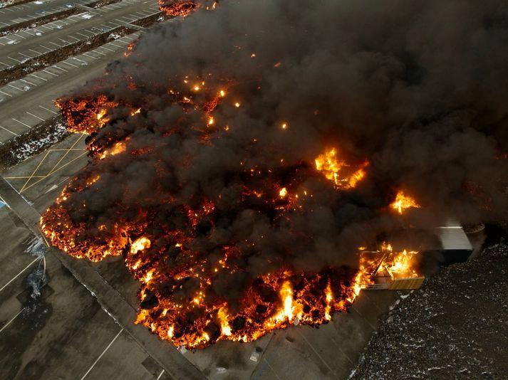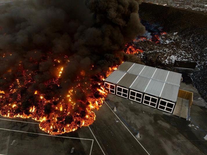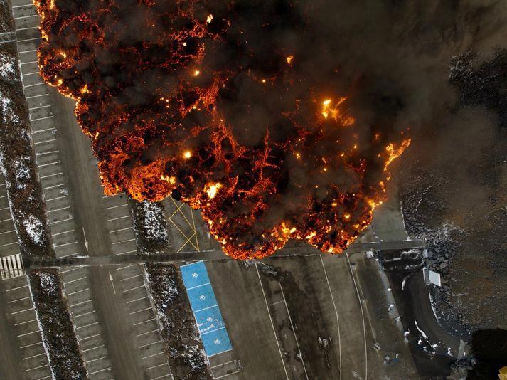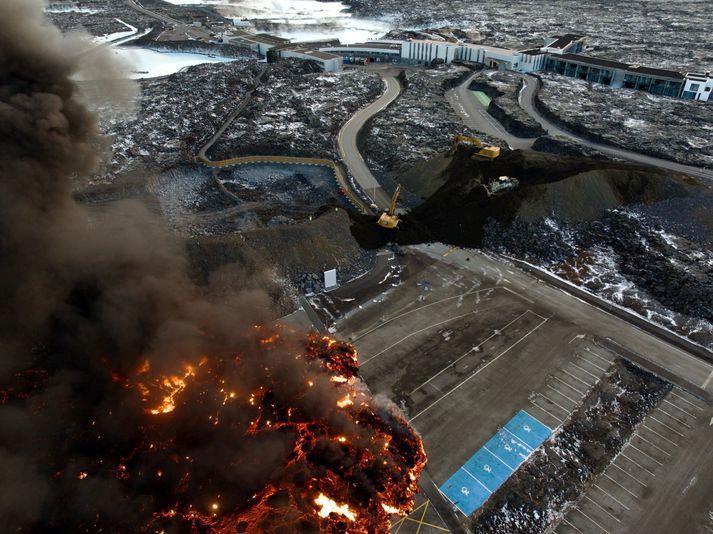 А ниже вид с дрона на Голубую Лагуну сегодня утром. Лава залила часть парковки, камеры хранения и уличные туалеты. Вроде бы самой Лагуне лава не угрожает, её окружают защитные сооружения из старой лавы, которые круглосуточно строят на полуострове с 1 января 2024 года по совету учёных-вулканологов.
