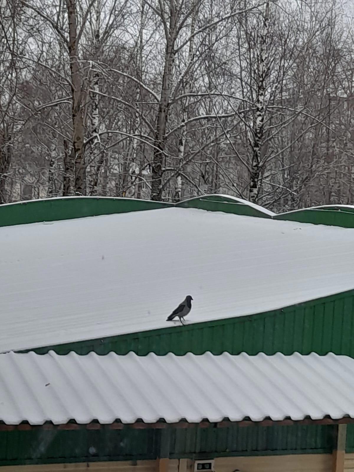 На этой крыше, когда падает свеженький снег, сантиметров эдак 5-10, они купаются. Тут было потепление, слой стаял. Новый еще не набрался.