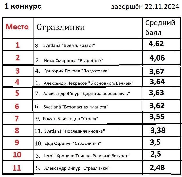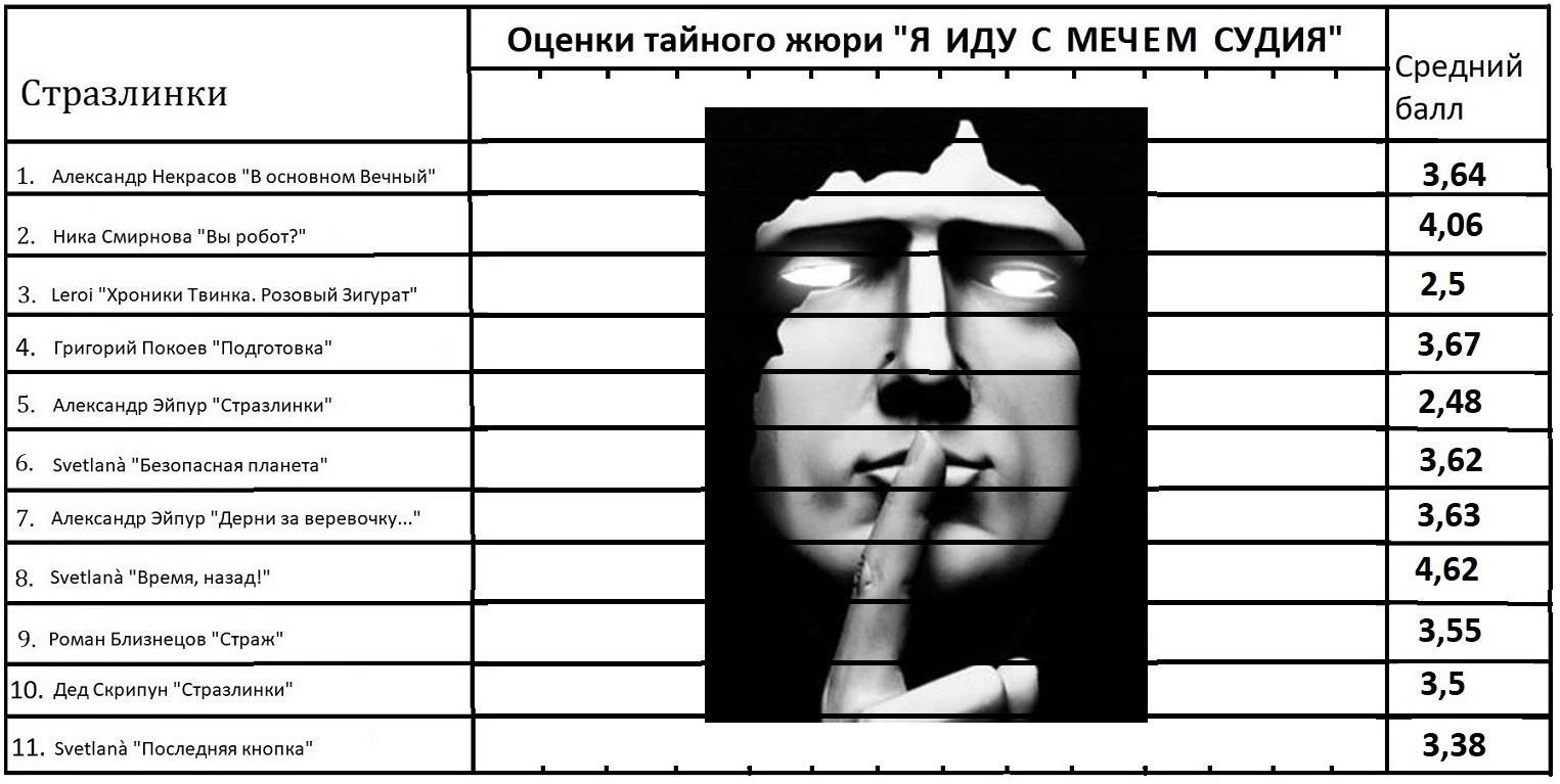 Итак, голосование тайного жюри закончено. Результаты сведены в таблицы: