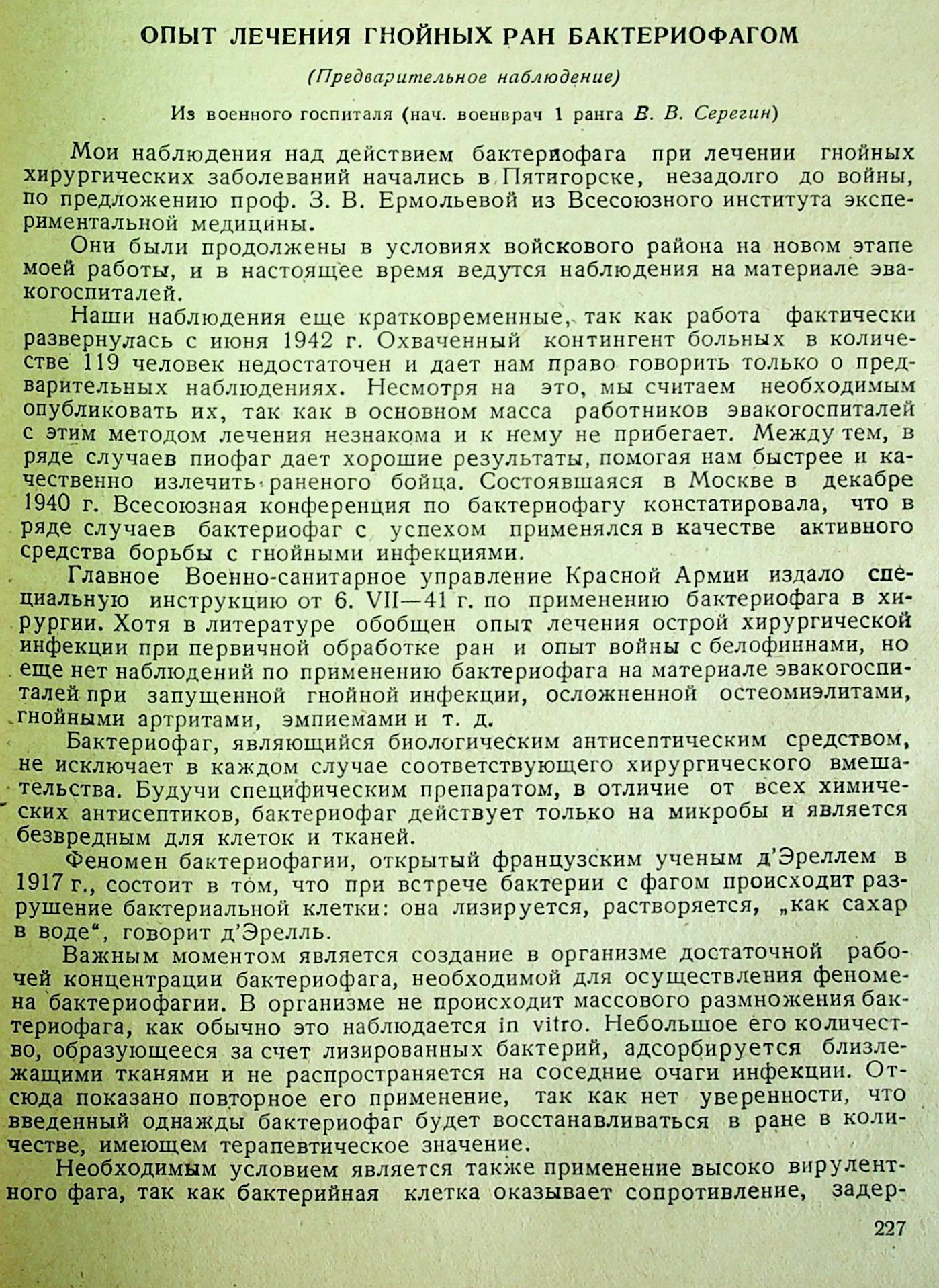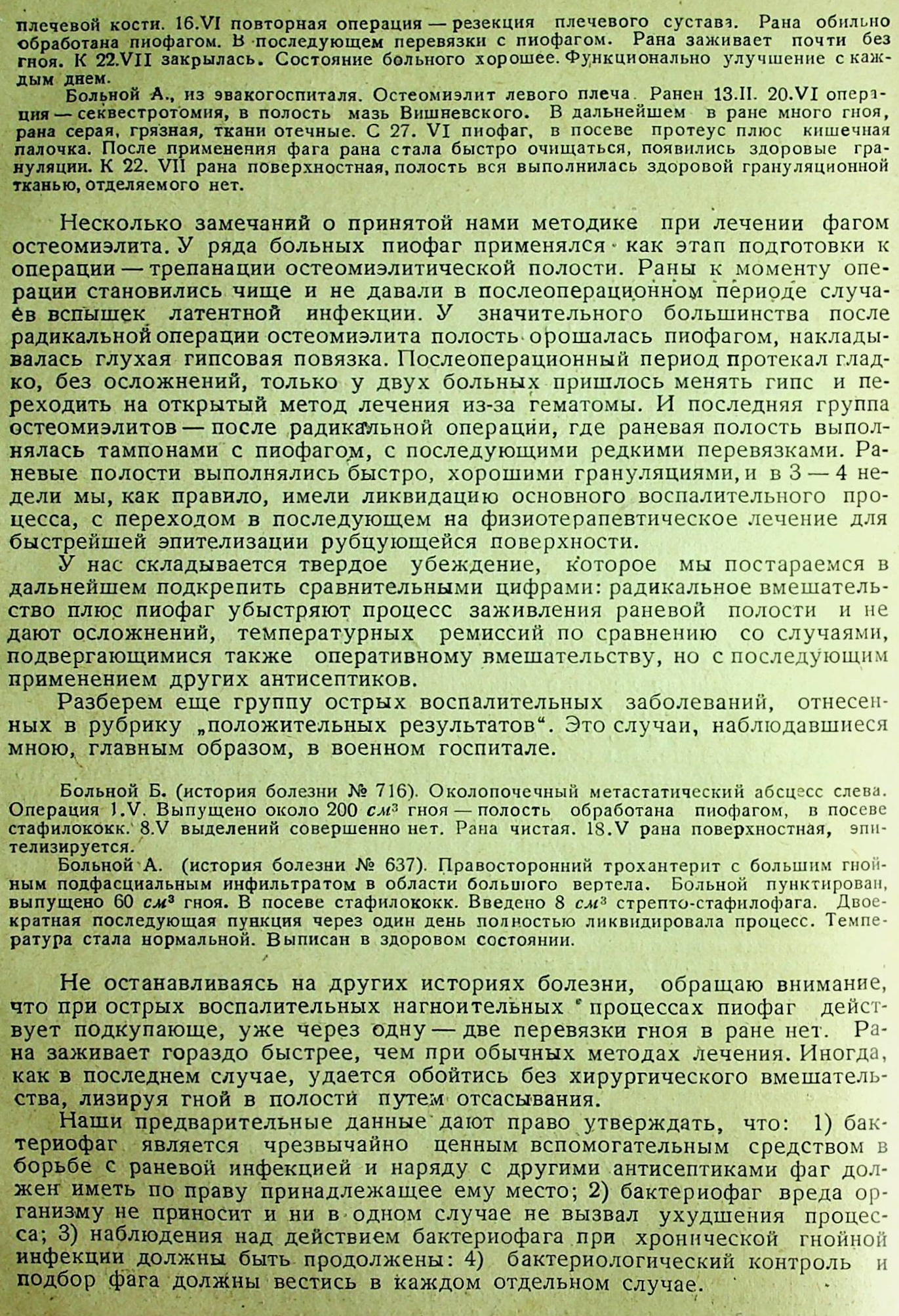 Применение бактериофага для лечения ранений в ВОВ: из "Военной медицины глубокого тыла"