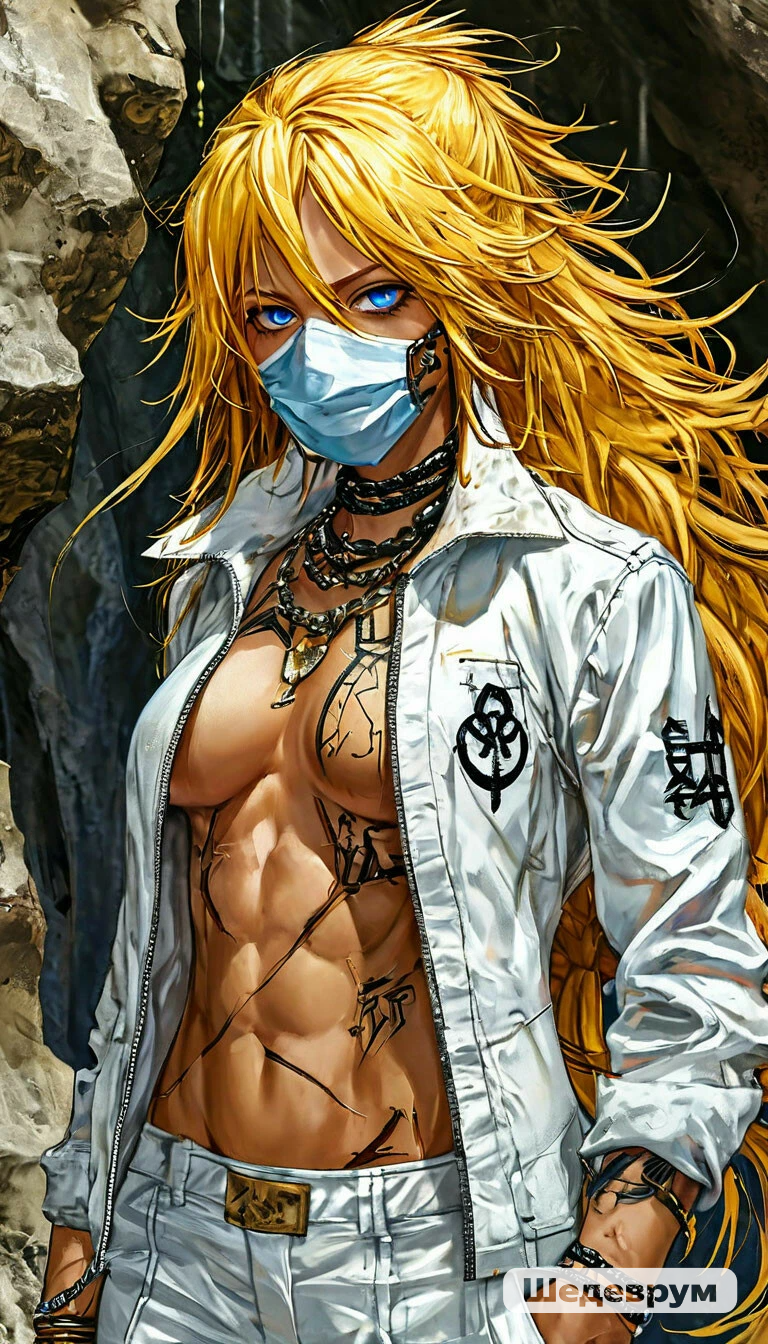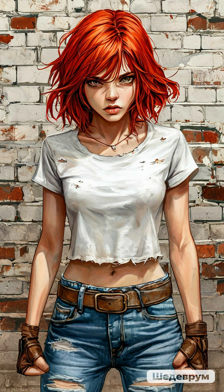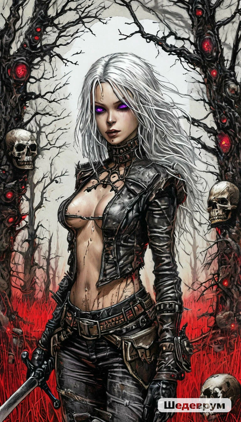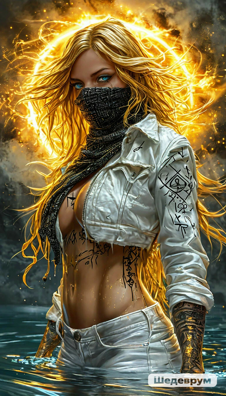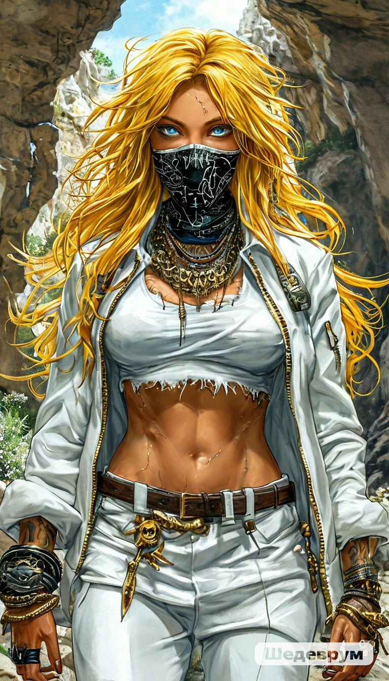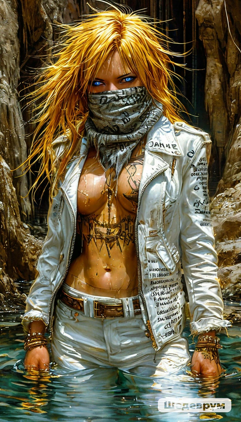 Сделано в версии 2.0. Мультяшно, комиксово, ткань скрывает черные шрамы.