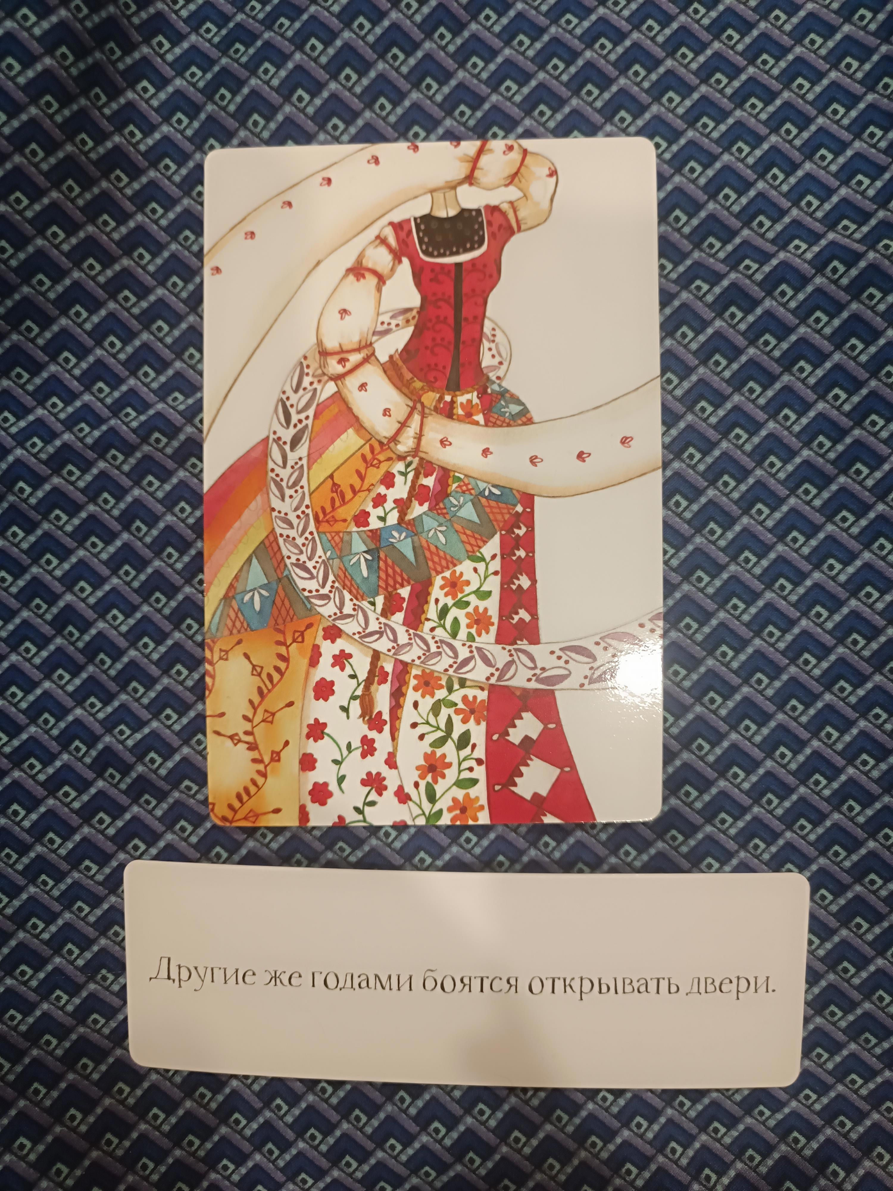 О, какая яркая, многослойная картинка и не менее интересная подсказка! Разноцветный лоскутный наряд говорит о многочисленных интересах. Лицо дамы на картинке закрыто, и это тоже отражение вашего загадочного имени. А подсказка утверждает, что вы на правильном пути. Действуйте, и всё получится!
