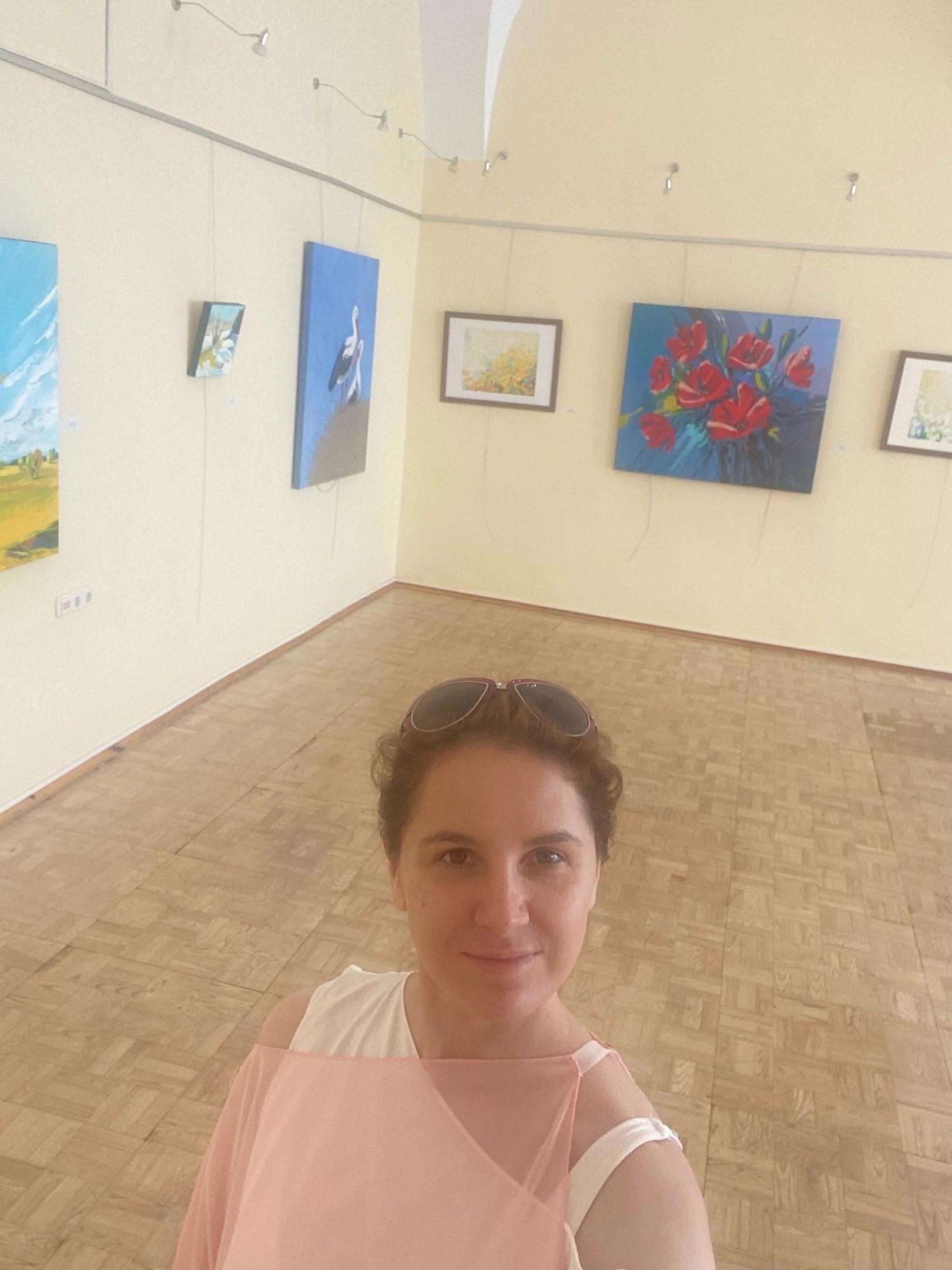 Совсем недавно (в прошлом году, с 7 июля по 13 августа 2023 года) у нее состоялась первая персональная выставка в Беларуси. Мы практически в режиме онлайн следили за ее приготовлениями, оформлением и доработкой картин. Круто, что выставка все же состоялась. Я надеюсь, что не последняя.