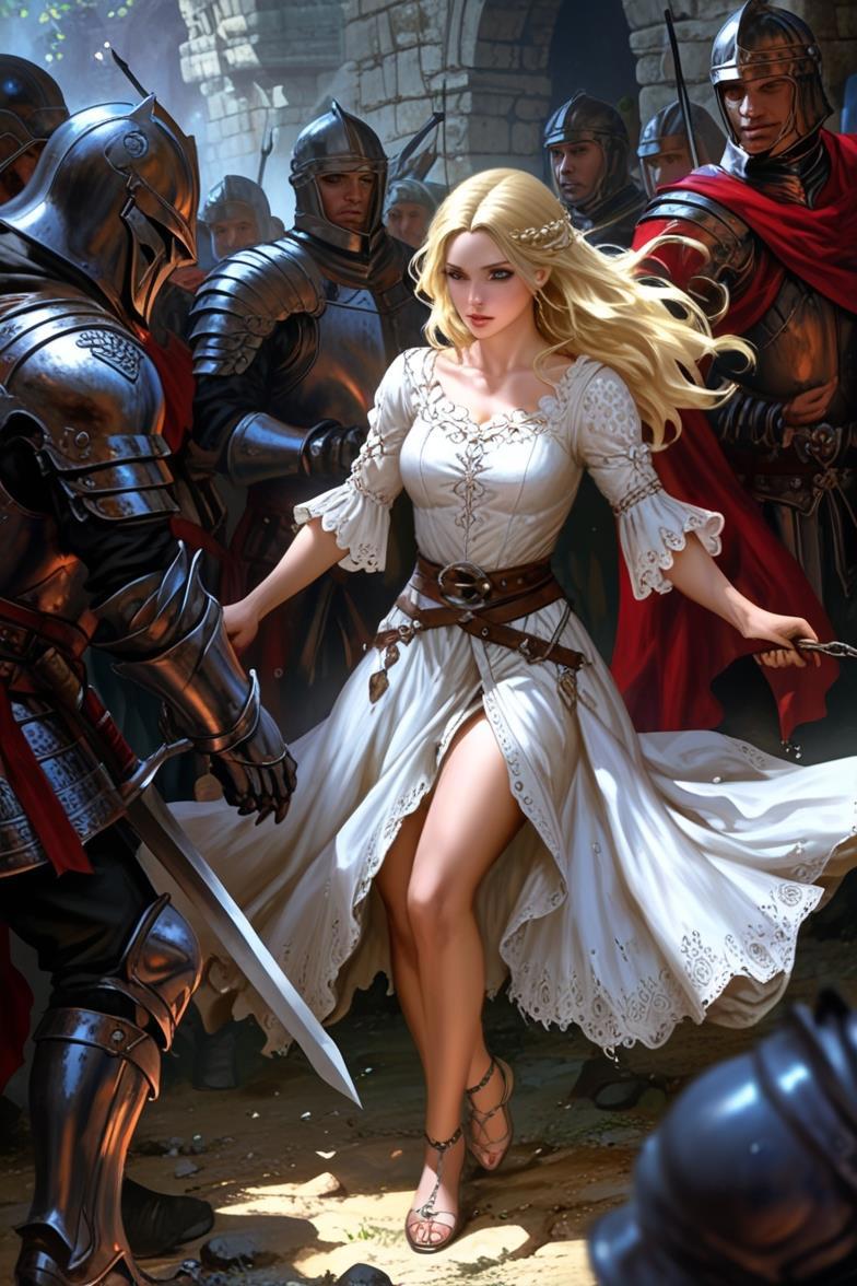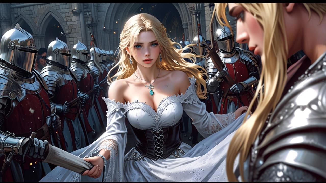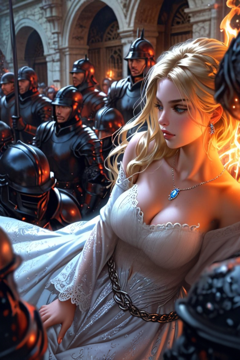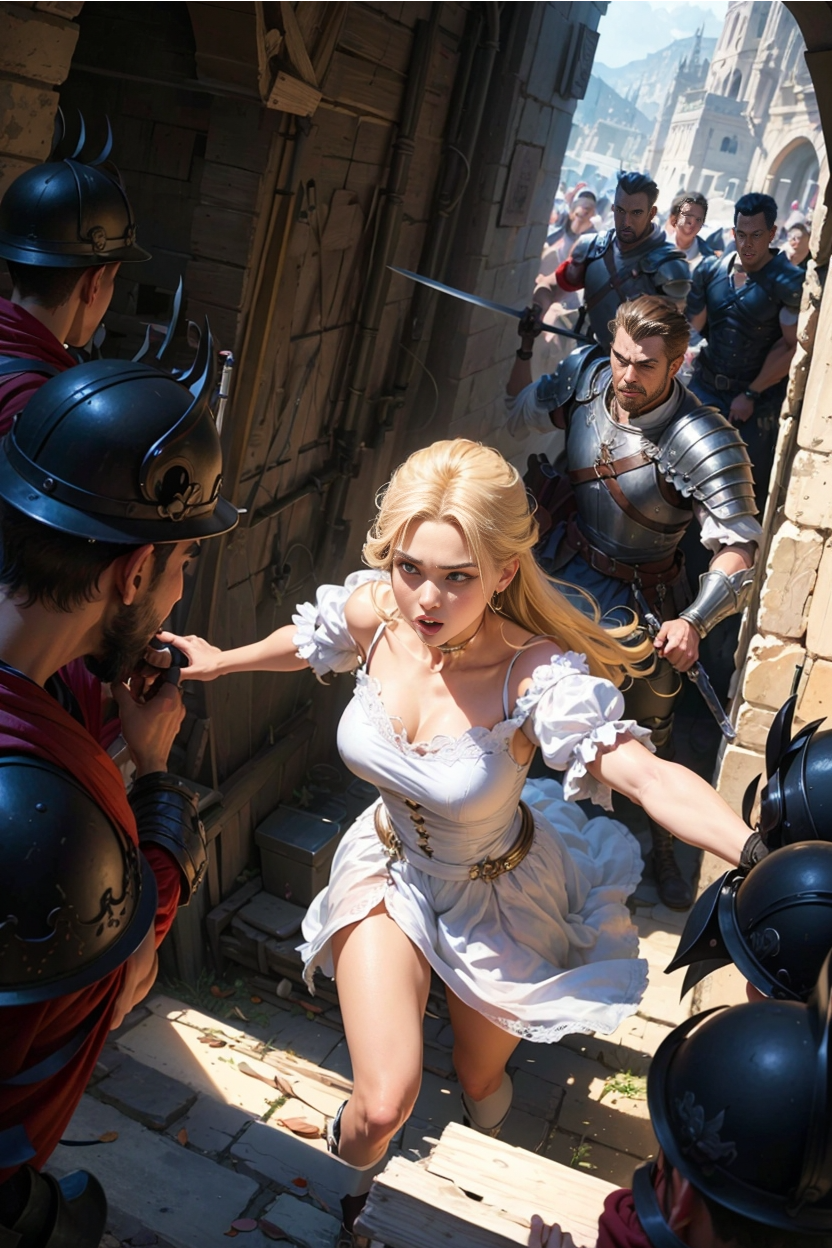 Принцессу под угрозами затаскивают в замок Черной гвардии.