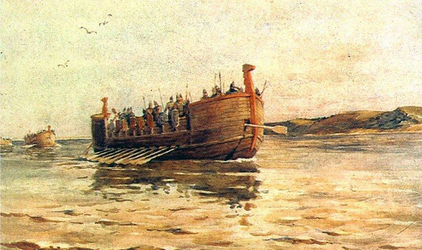 Получается, что для похода к Царьграду лучше подойдёт лодья с долблёной основой, для похода по мелким рекам лучше использовать плоскодонку с невысоким бортом, а если нужно плыть по Дону, Волге, другим крупным рекам или на Балтике можно использовать и то, и другое, а ещё лодью наборной конструкции. Другими словами, даже во времена легендарные боевые княжеские дружины скорее всего использовали для своих походов все типы существовавших тогда судов. А ещё все они так или иначе должны были нести какие-то паруса. Ограничения по выбору типа составляли лишь условия плавания в разряде поставленной задачи.