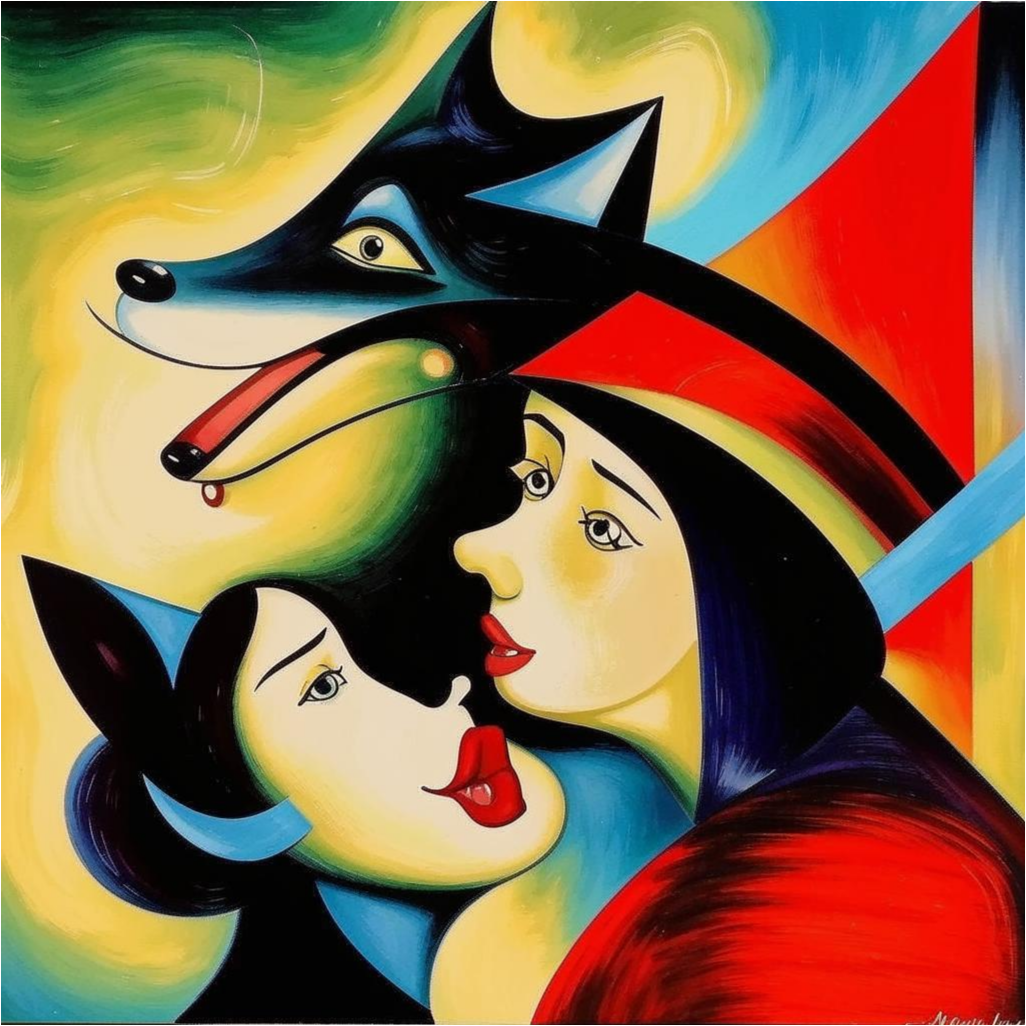 И напоследок - объявилась даже бабушка Шапочки, хотя ее в запросе, клянусь, не было! И у меня жгучее подозрение: а может, ИИ читает произведения? причем без всякого программирования? Так, из любопытства, что там люди нафигачили...