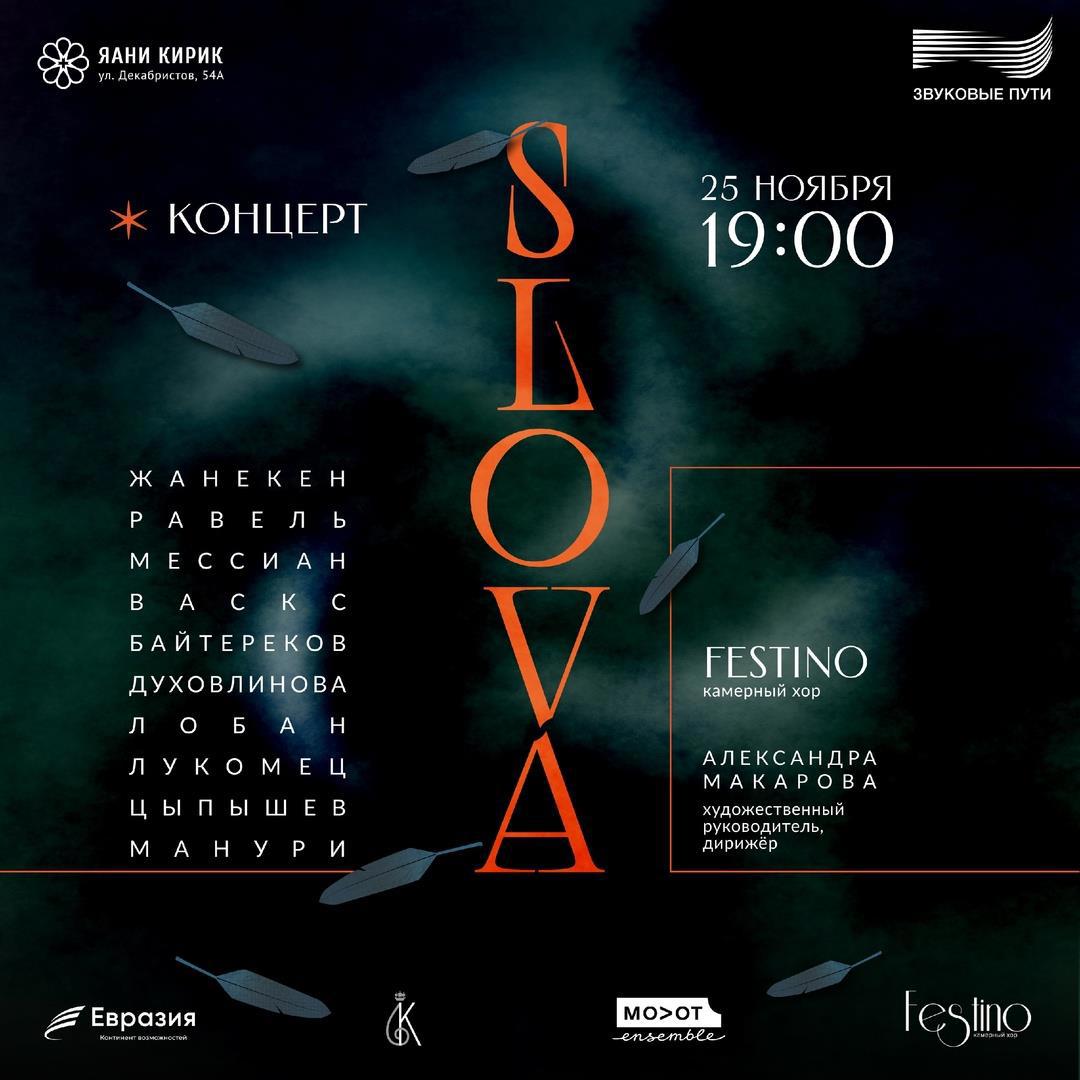 Автор: 01В Концертном зале Яани Кирик 25 ноября на XXXV фестивале новой музыки "Звуковые пути" будет представлена программа "Slova" камерного хора "Festino". Слушателей ждет путешествие от истоков композиторской музыки, произведений авторов школы Нотр-Дам на сакральные тексты до современных хоровых миниатюр молодых композиторов стран СНГ. Компания из десяти композиторов разных эпох — удивительная и прекрасная! )