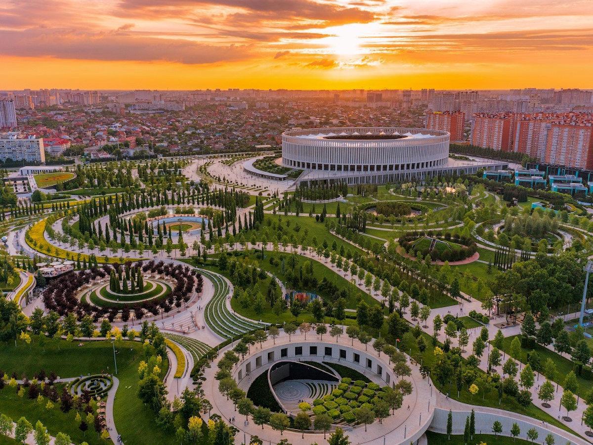 Парк, как и прилегающий стадион построен на деньги Сергея Галицкого, бывшего владельца крупнейшей сети магазинов "Магнит". Прекрасный пример того, во что можно превратить пустырь при должной целеустремлённости.