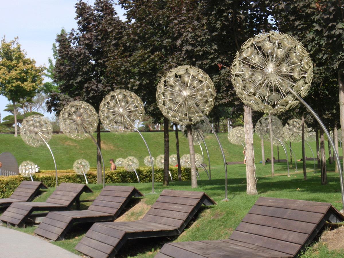 Все, кто хочет посетить Японский сад, должны иметь в виду, что на посещение берётся QR-код, а само посещение идёт в порядке живой очереди. Сколько человек выпустили, столько и впустили. Поскольку мы были ограничены во времени, то в Японский сад не попали, но зато уж по остальному парку нагулялись вдоволь. А вы знали, что там практически нет углов – все дорожки сделаны в виде окружностей, спиралей, изгибов и полусфер? Это особенно заметно с высоты.