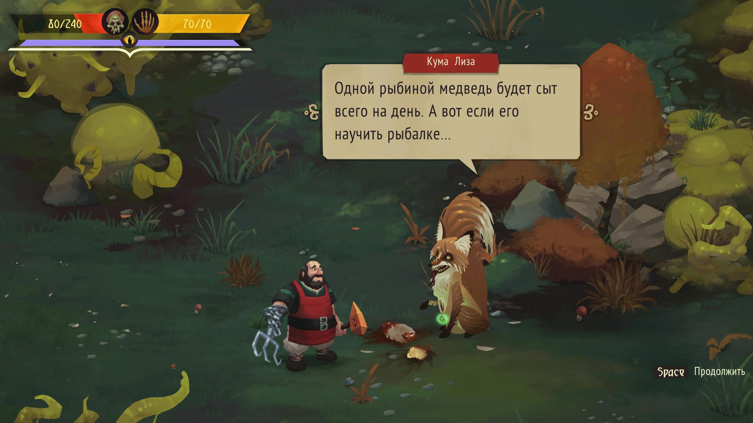 Как легко догадаться, в игре нас ждёт мир русских сказок, пускай и немного стилизованный. Есть деревня, есть дремучий лес, есть болото, есть горы.