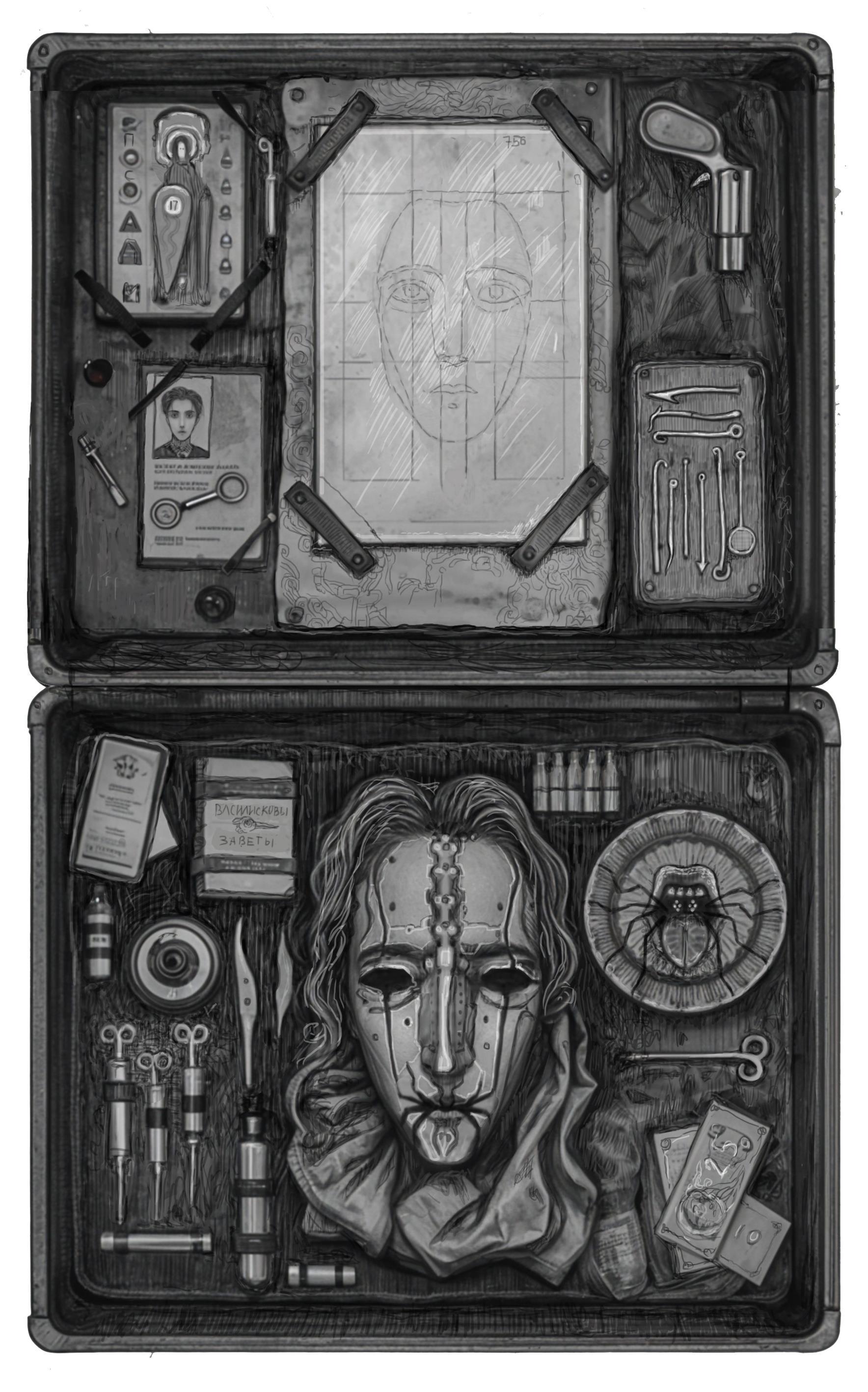 Маска паучий поцелуй: посвящена истории царевича Вольги и богини Огнешки. На исходе своей девятой жизни богиня полюбила юного царевича. Он не ответил ей взаимностью. Тогда она похитила его в чертог на вершине сорокопутского дерева, но царевич спрятал во рту ядовитого паука Лукино, во время поцелуя тот укусил богиню за язык и оборвал её последнюю жизнь.