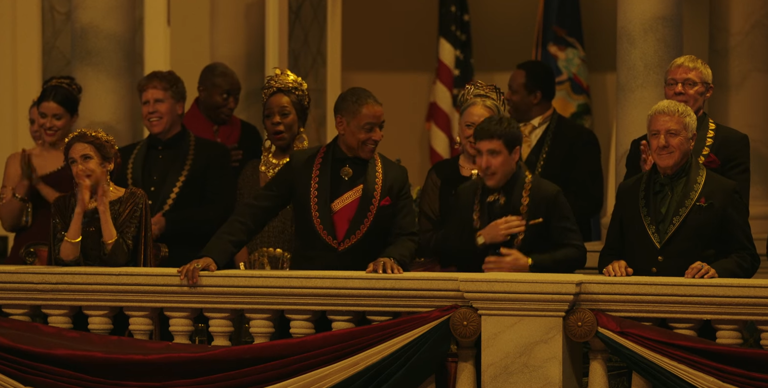 Фильм политизирован, но со вкусом. Банкир одевается в костюм Робин Гуда на Сатурналии. Местная белокурая сивилла пользуется приёмами гипноза и манипулирует триггерами. Фембой Клавдий переодевается в классическую фашистскую кожанку, а его тусовка кричит: власть народу. Осколок СССР, начинённый ядеркой, летит прямо на Нью-Рим, пока там решают: мы любим нашу старую богато-бедную помойку или надо решиться стереть старый образ жизни? Плюс мигранты, которым трущобы снесли, а расселение не сделали, и это нормально. Такой, эм… праволиберальный ракурс, наверное.